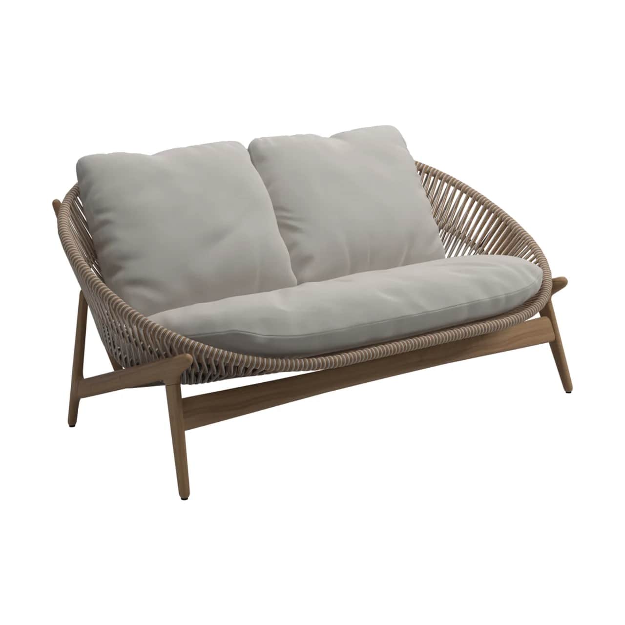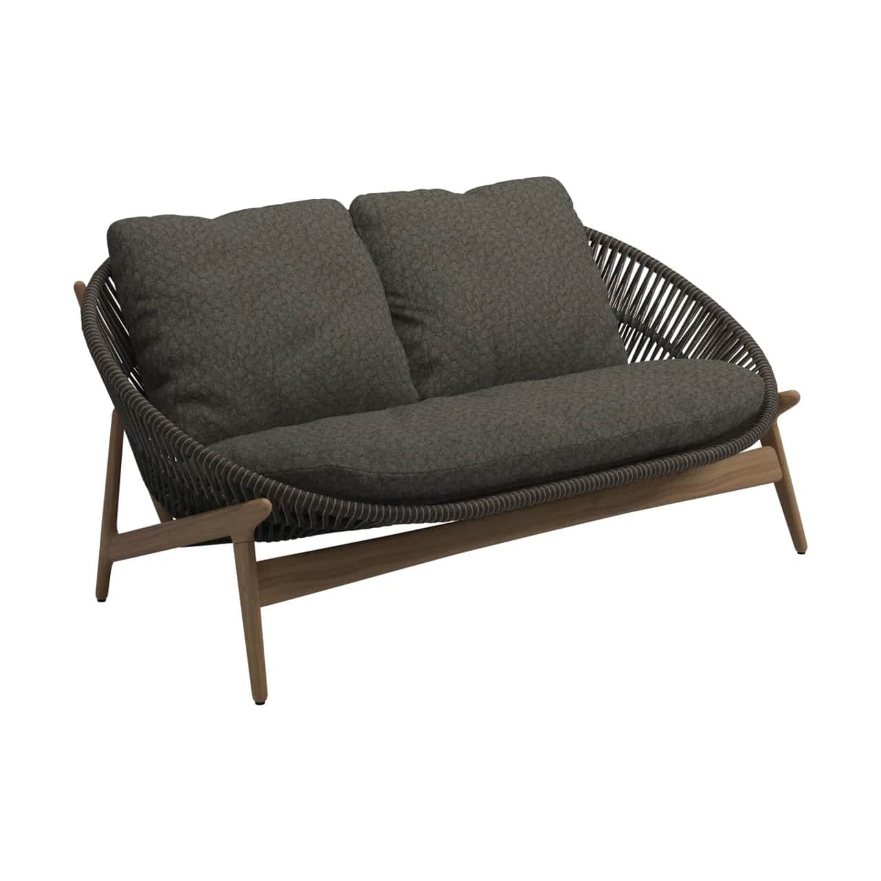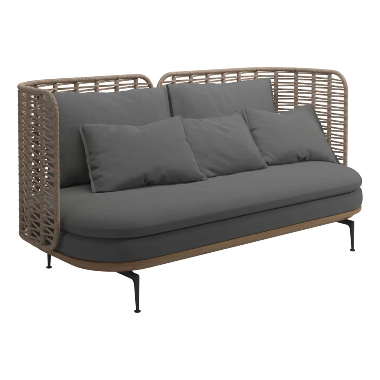 A curved outdoor sofa like Gloster Kay has a dramatic sweep to the back to counterbalance the forward leaning posture of the teak frame for a truly visually remarkable profile. The open-woven seat back, available in 3 earthy color choices, lends an airiness and Far East flavor to the piece. Who says outdoor sofas have to be boring? DEDON SWINGREST even offers a hanging outdoor sofa that you could suspend over a lake if you were so inclined.