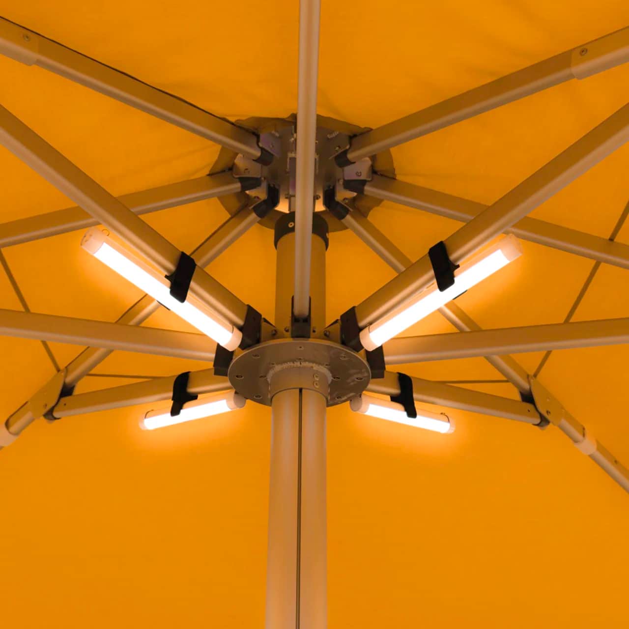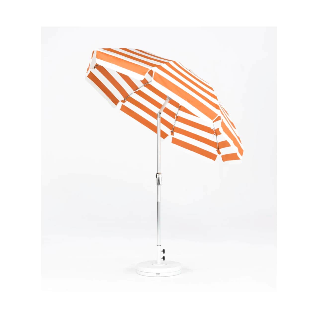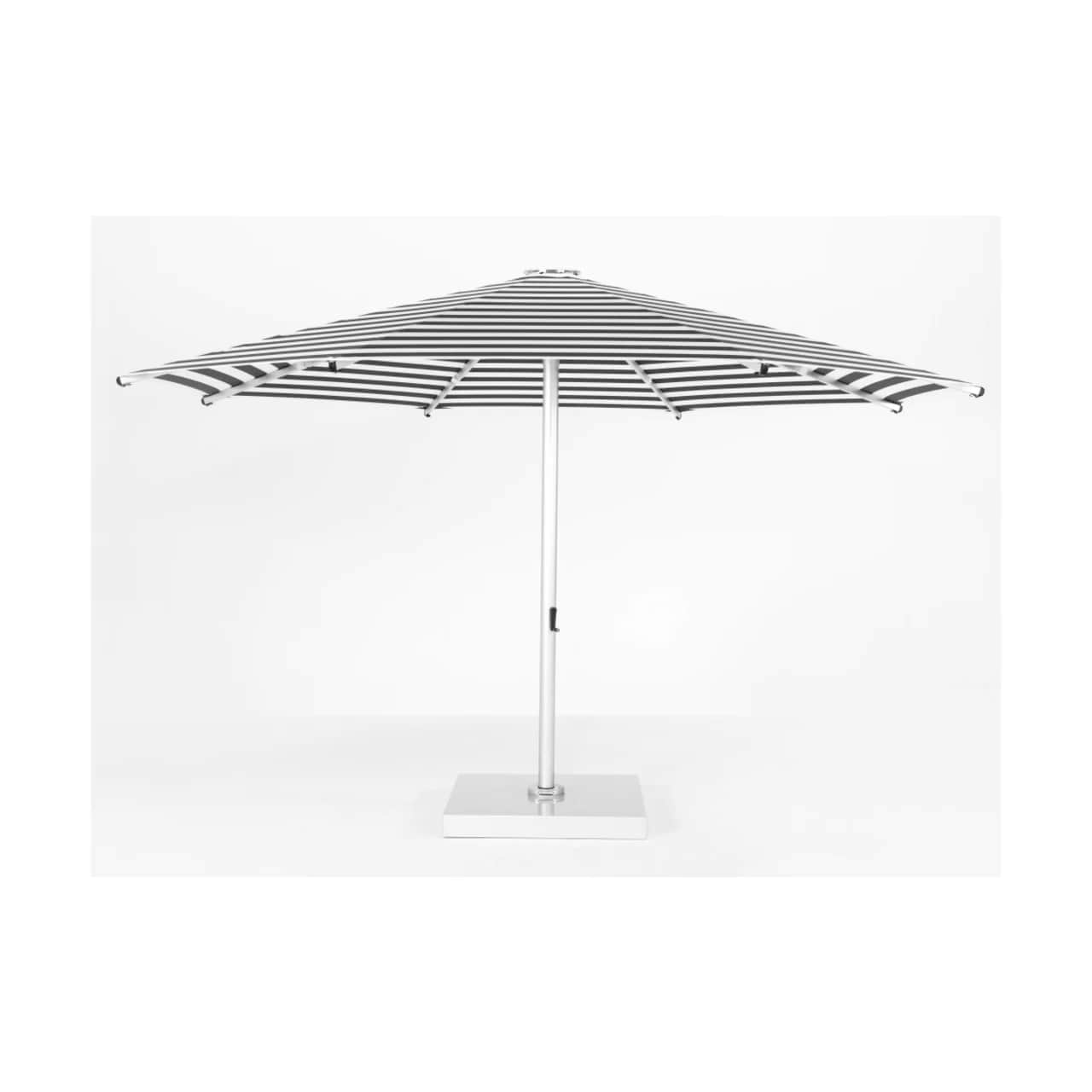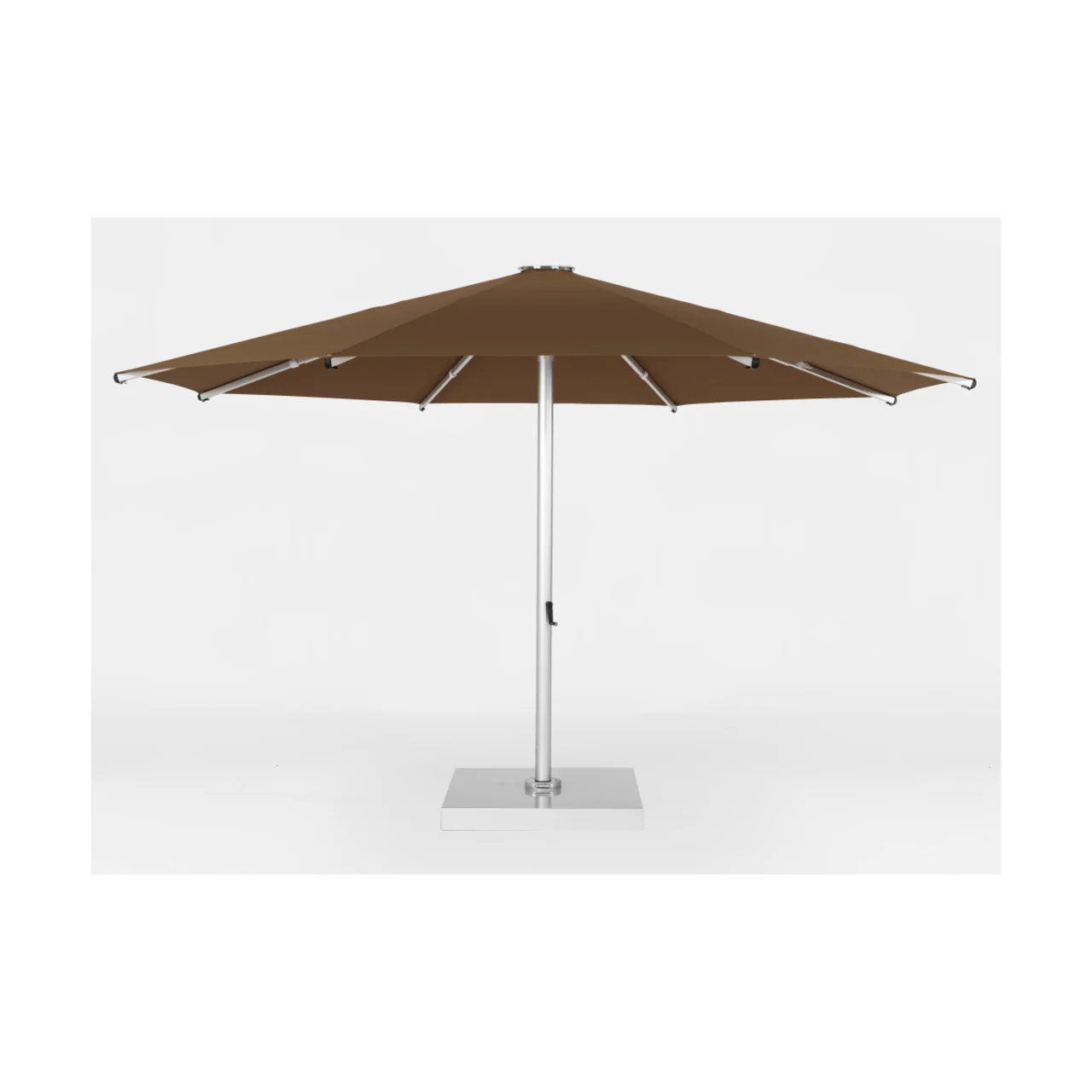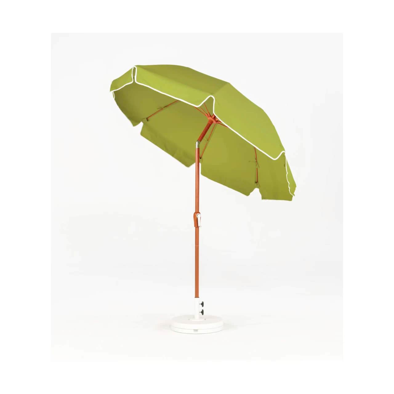The traditional market umbrella, also known as a center-pole umbrella due to its centrally located pole, resembles a larger ground-mounted version of the time-honored handheld umbrella. The pole, historically made of wood and also known as the mast, is located directly beneath the canopy dome. Barlow Tyrie's Napoli Parasol is about as classic of an example of this style as you can get, with a gorgeous eucalyptus wood telescopic pole and an ivory Sunbrella fabric canopy.