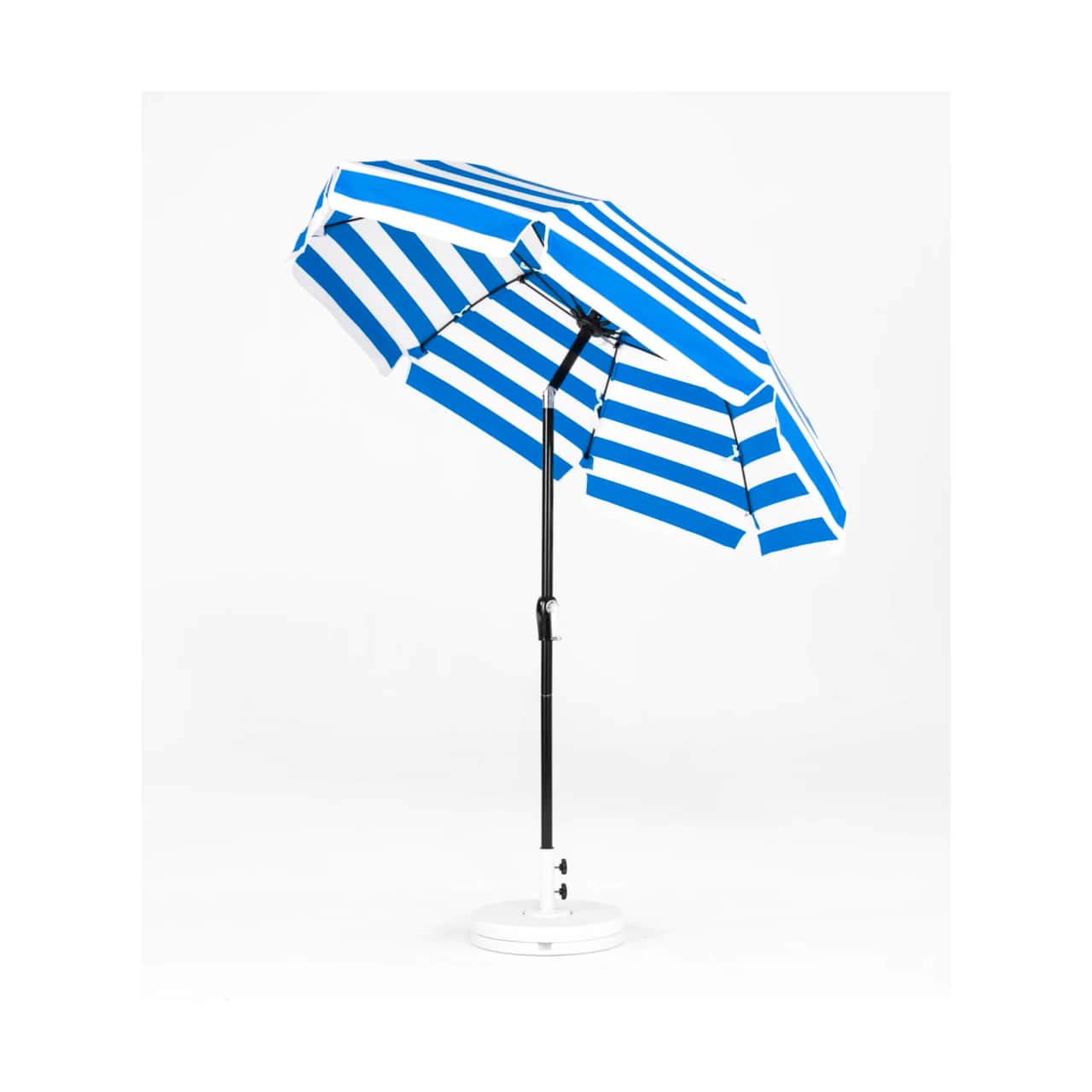 As a general rule, market umbrellas with a canopy diameter under 10 feet are ideal for a smaller dining set or a pair of casual chairs.