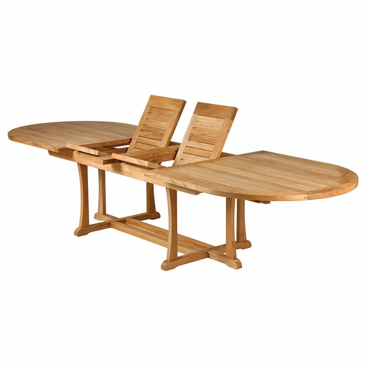 The shape of your patio table should fit your space, but can also contribute to the atmosphere you wish to cultivate. Oval patio dining tables, like the Sterling Oval Extending Dining Table, are preferable for more formal affairs, while square and round outdoor dining tables bring the casual ambiance of a family kitchen table.