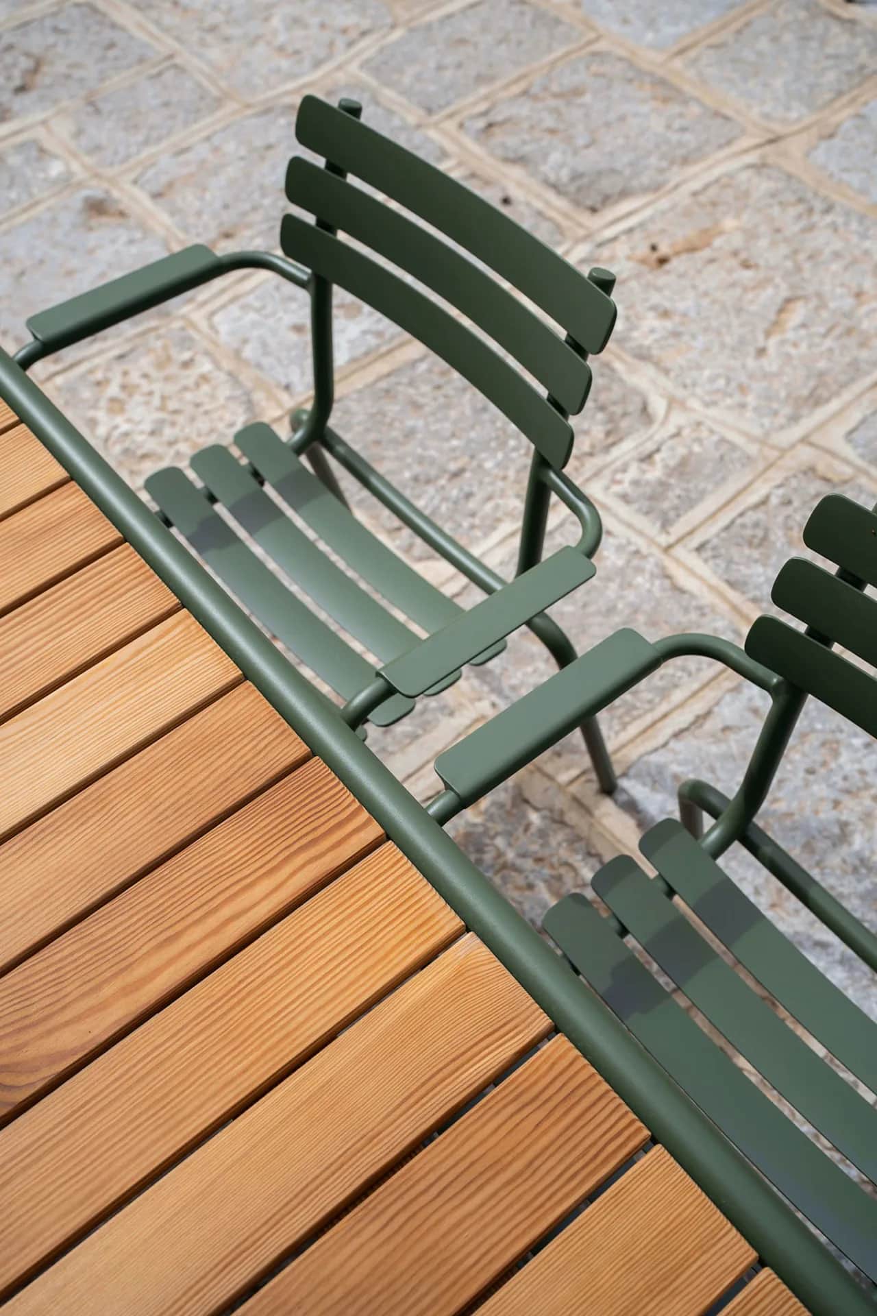 Dining sets are the most straightforward guarantee that your chairs will match your table. Our most popular dining collections, like Barlow Tyrie's lightweight Aura range, offer chairs and tables in a variety of styles, allowing you to create a custom dining set. Manufacturers tend to carefully consider how pieces from different collections will pair together, and some vendors, like Houe, design their dining chairs to work with every table in their catalog.