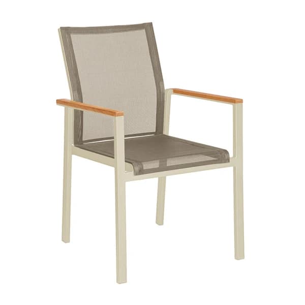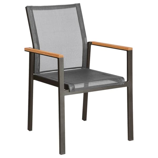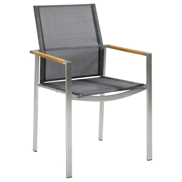 Windy areas call for more robust chairs that won't topple over with a strong gust of wind. Shop chairs made with heavy wood or solid steel and double-check the weight before you order. POINT's stainless-steel reinforced Summer dining chairs look lightweight but weigh a sturdy 24 lbs.