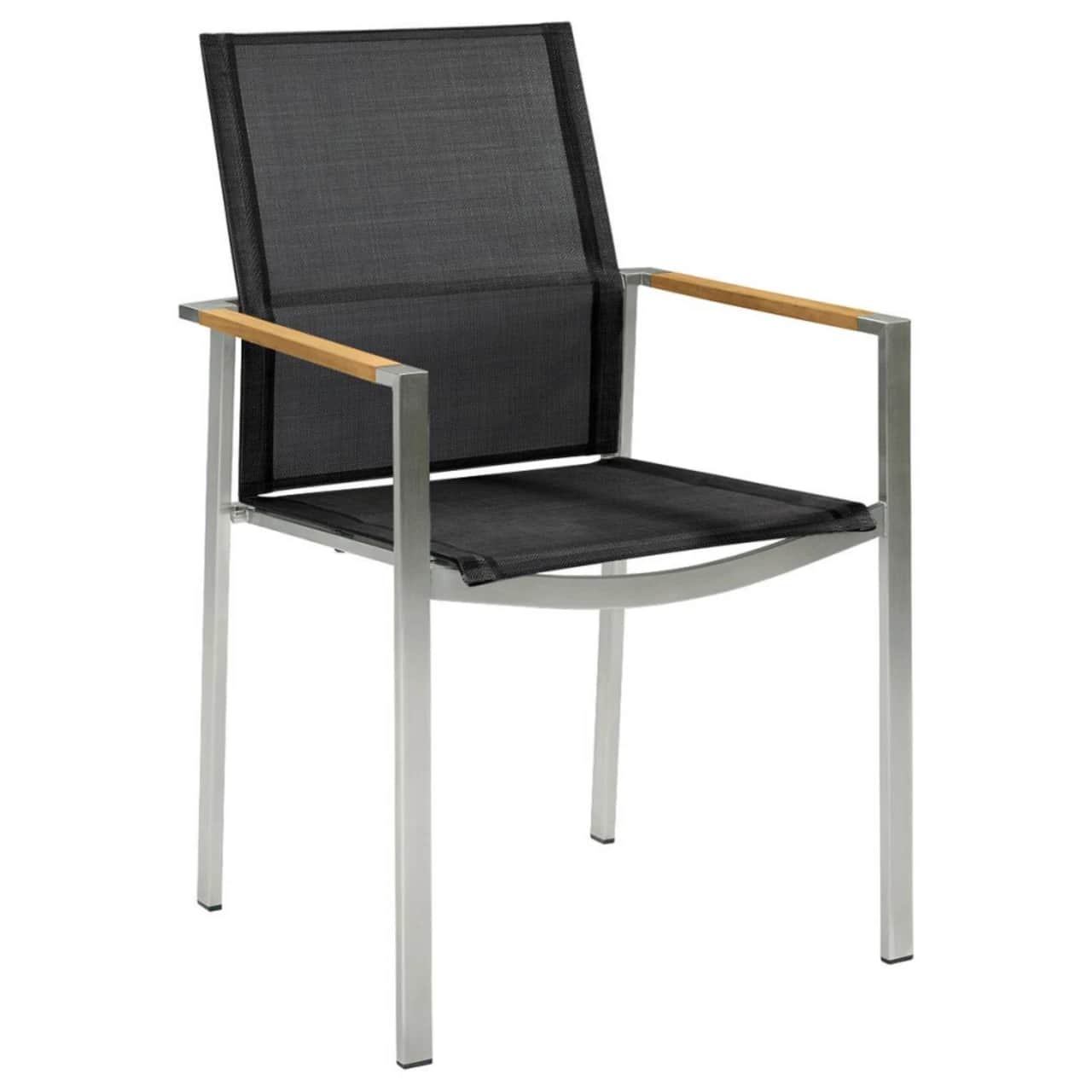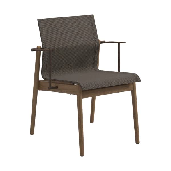 Your environment and stylistic preferences should inform your choice of material. Solid teak outdoor dining chairs possess a classic, natural beauty and offer excellent performance in any environment, developing a silver patina over time. For a more modern take on teak, consider chairs that layer modern materials on a teak frame.