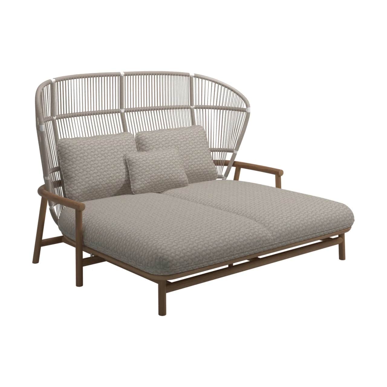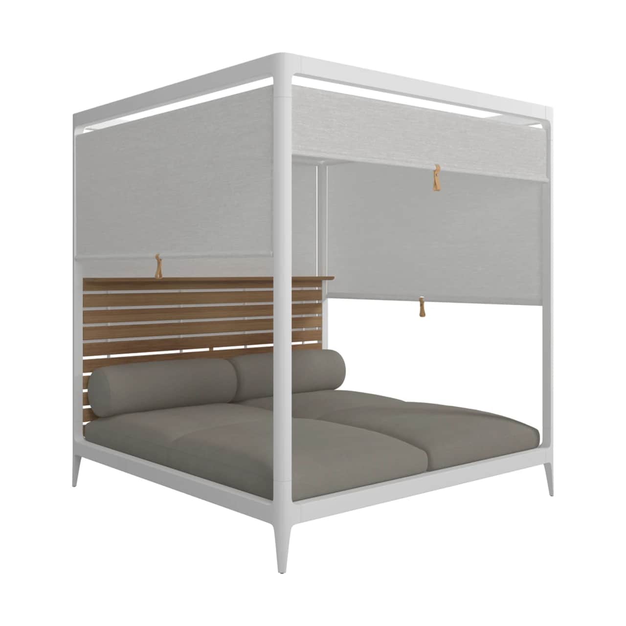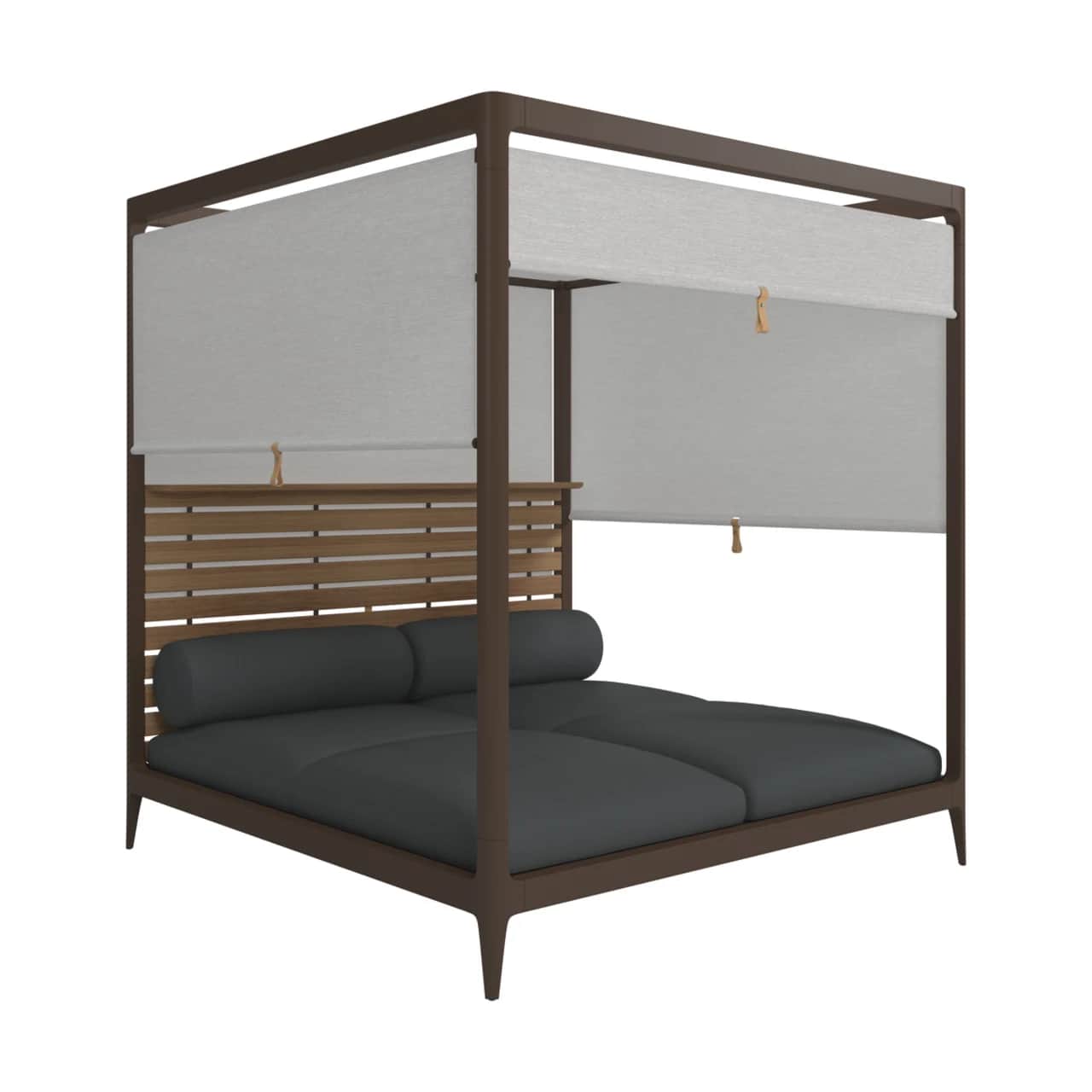 Teak outdoor daybeds tend towards prominent platforms and a classic look, but, when combined with aluminum, assume a sophisticated, lighter profile. Gloster's Mistral is an excellent example of a modern teak outdoor daybed.