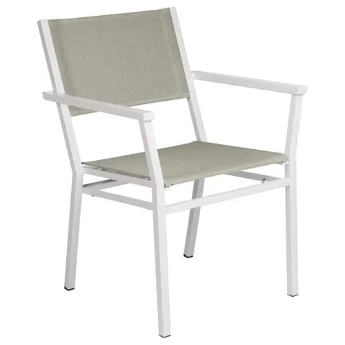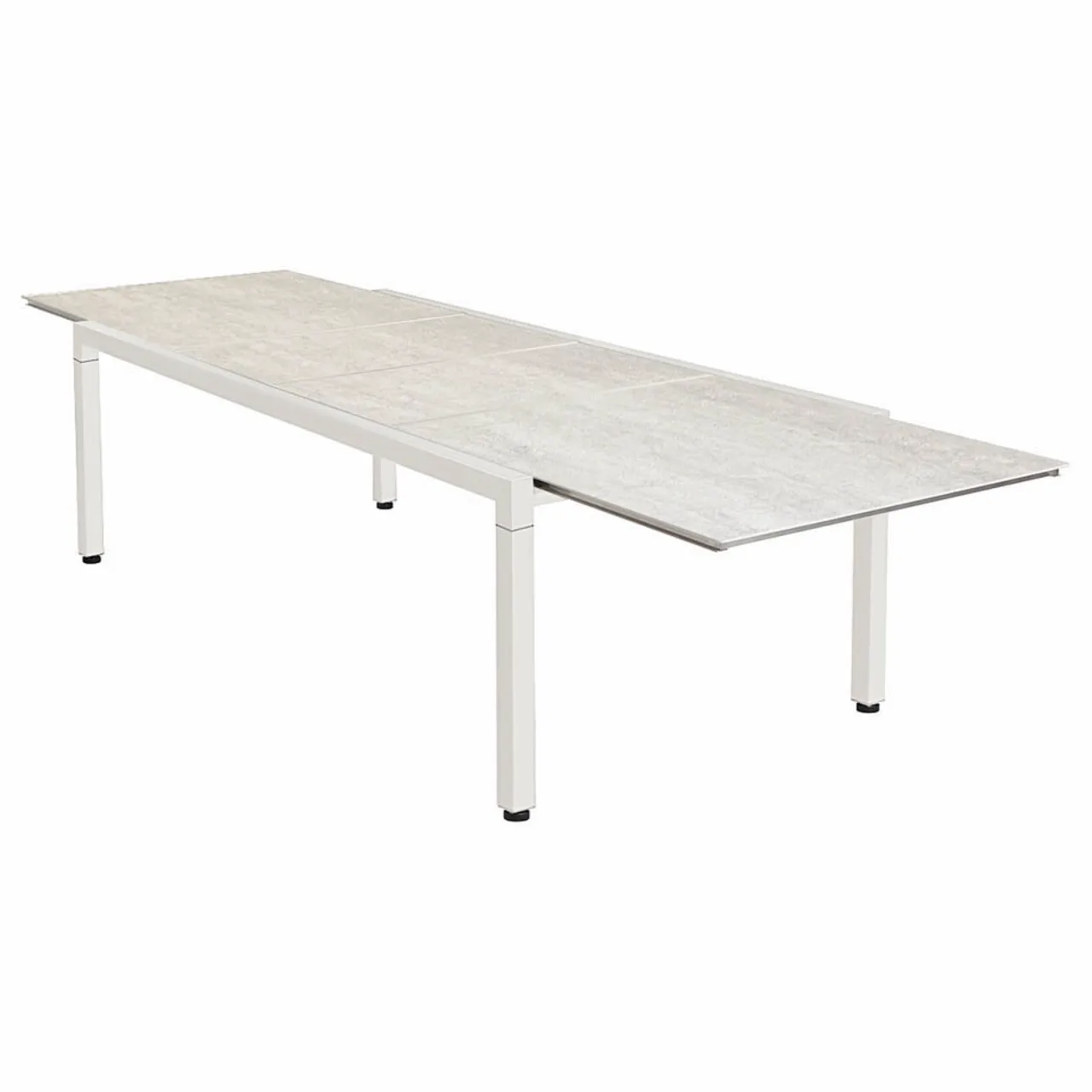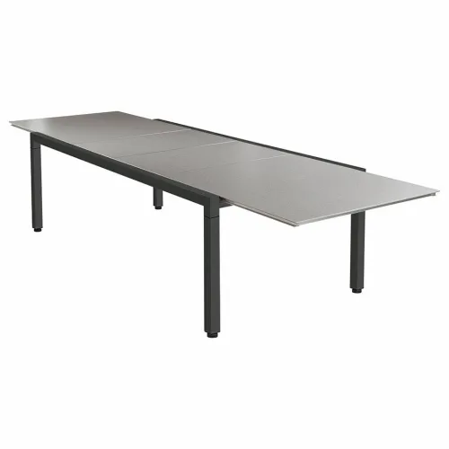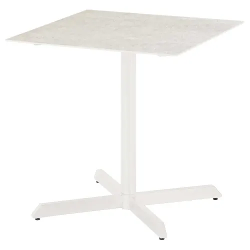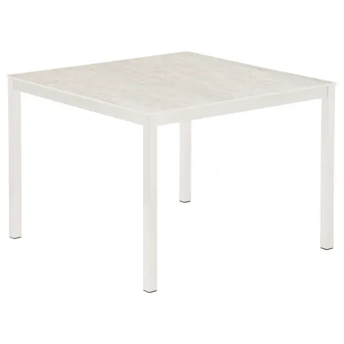 Equinox Dining collection features aesthetic armchairs and side chairs with extendable and round dining tables for large gatherings as well as square and pedestal dining tables for small spaces; all in sleek, modern design. The powder-coated, stainless steel frames are complemented with easy maintenance Sunbrella sling seats and backs. The attractive dining tables consolidate the sleek powder-coated frame with an elegant Italian ceramic top.