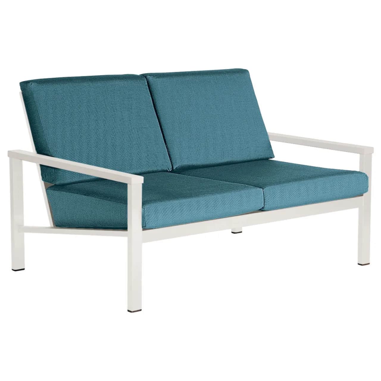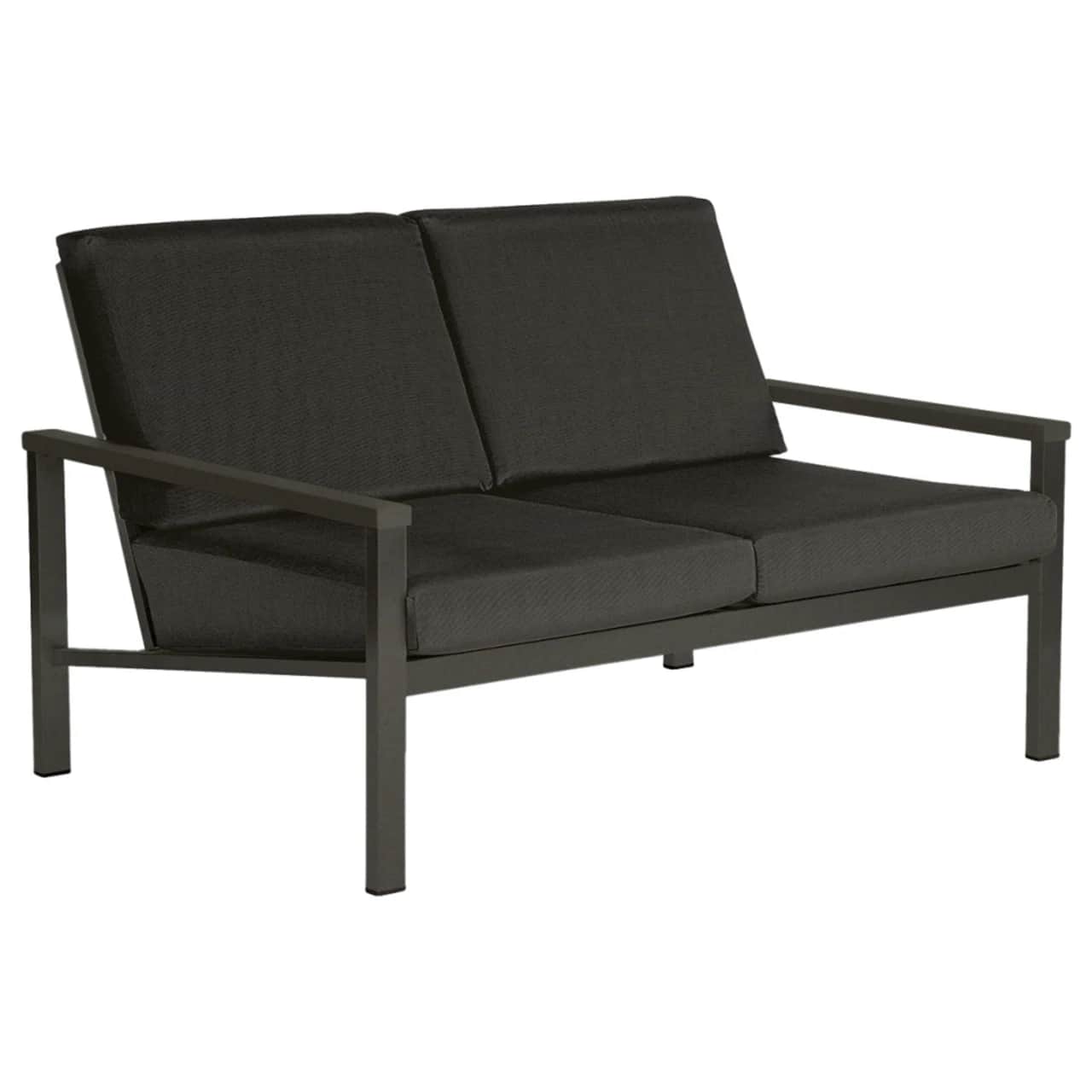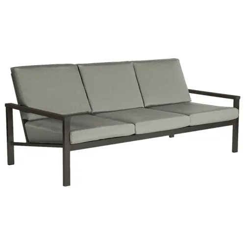 This deep-seating collection features clean and simple lines. The powder-coated, stainless steel frames are complemented with all-weather seat and back cushions. The latter ones are comfortably thick, yet neatly tailored for a crisp, modern look that goes anywhere, indoors or outdoors. Seat and back cushions are supported by an easy maintenance Sunbrella sling panel. The two aesthetic low tables consolidate the sleek powder-coated frame with an elegant Italian ceramic top.