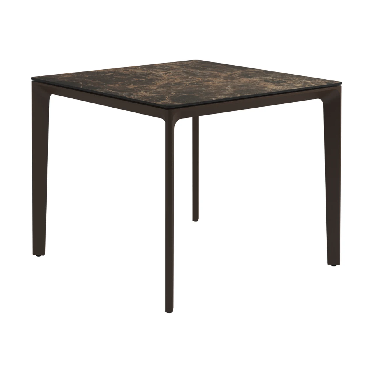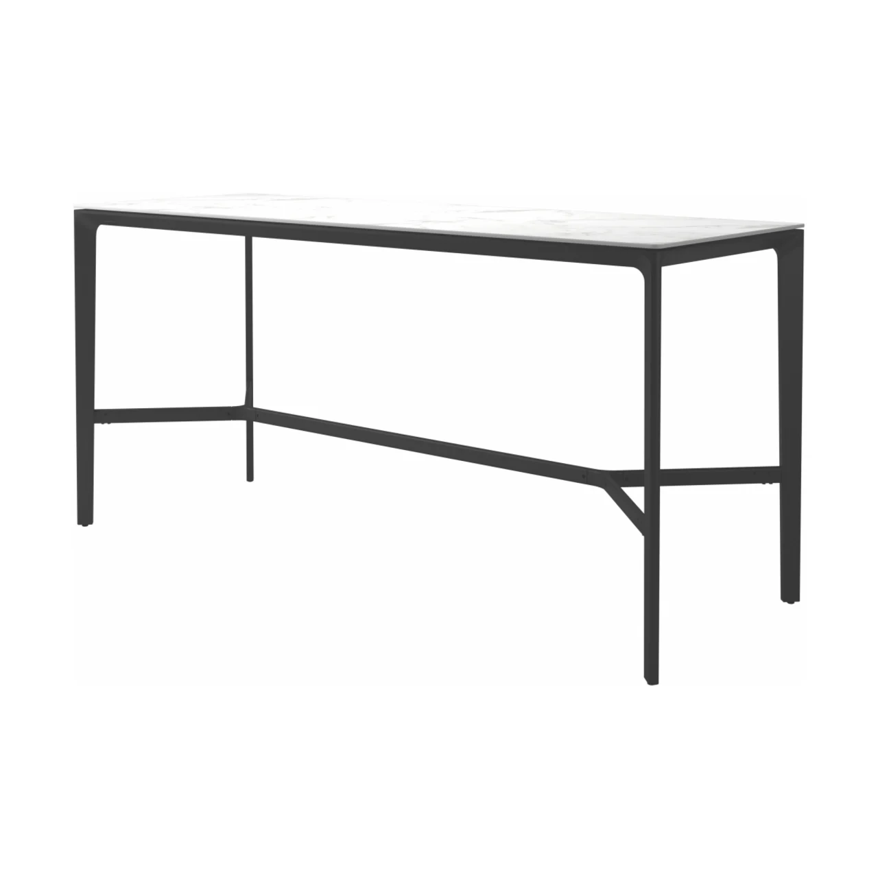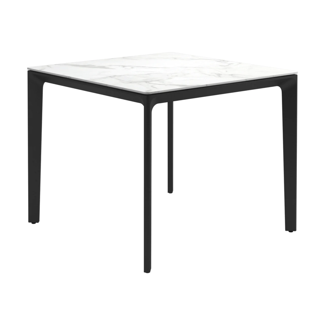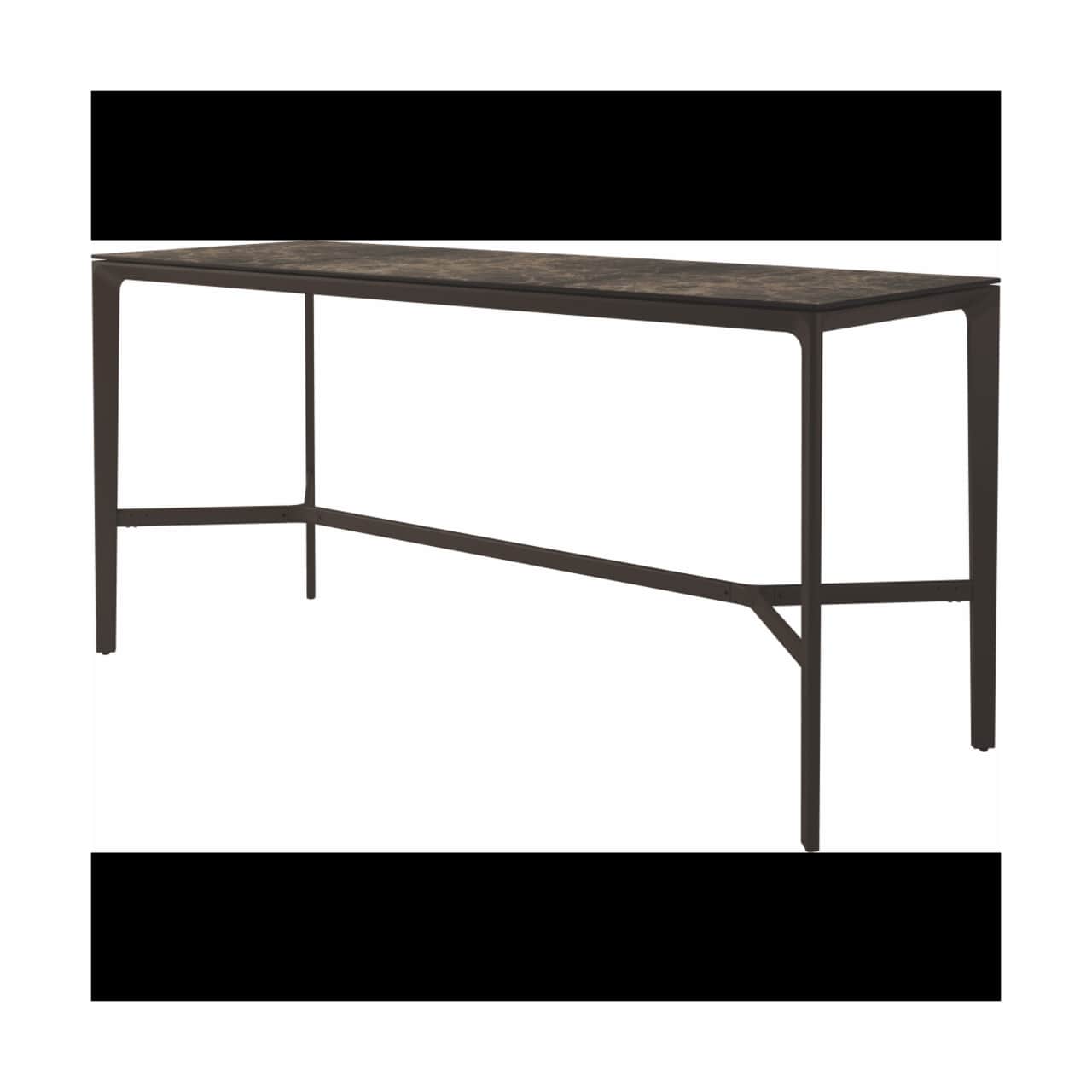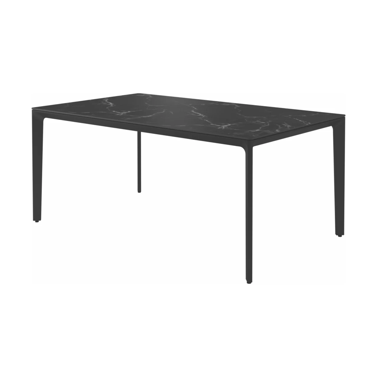Carver tables are offered in three different lengths ranging from 35 to 110 inches, seating four to ten people. The powder-coated aluminum frame is available in white and meteor color and harmonizes with each of the ceramic top as well as with the natural-finished teak top. A brown colorway also features limited availability. Contact customer service for details.