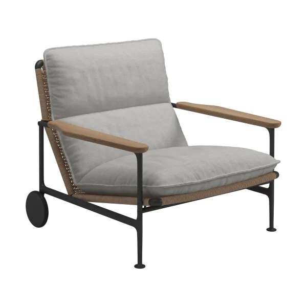 The points and angles of Zenith's design flow resemble a star chart, mapping out a very spare yet invitingly comfortable lounging experience. Basket-weave style wicker panels dip below the horizon of the seat to cradle the seat's occupant. This diverse array of materials coalesces into something, modern, luxurious, and practical, trademarks of Gloster's signature design aesthetic.