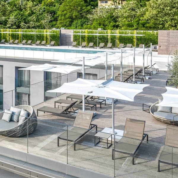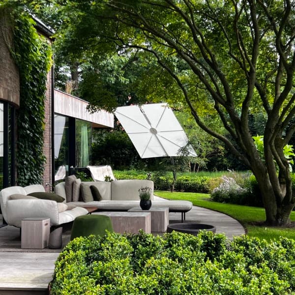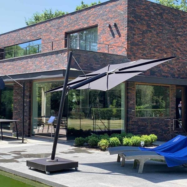 The Umbrosa Spectra Umbrella is a carefully crafted marriage of contemporary aesthetics and high-performance functionality. This offset or cantilever umbrella design sports a flat canopy with a unique geometric character. It is ergonomic and simple to operate, place it into any tilt level by moving the elegantly styled handle up and down the track of the streamlined pole. Choose one of two angles of inclination allowing the umbrella to stand straight or lean forward to suit any design style.