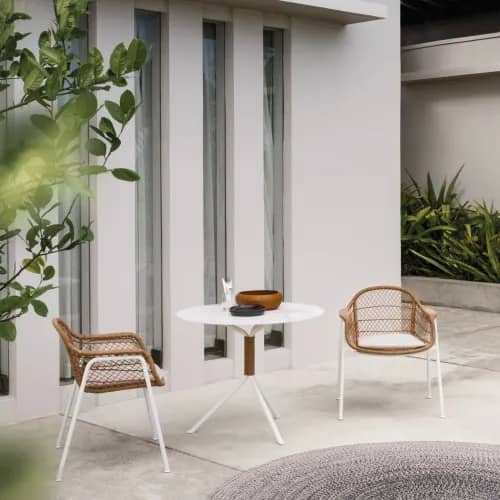 Discover our collection of modern aluminum outdoor furniture from top European designers. This durable lightweight metal possesses weather-resistant properties that make it an ideal choice in any environment. In a marine environment, choose furniture or umbrellas with an anodized aluminum finish for extra protection against tarnishing and oxidation.