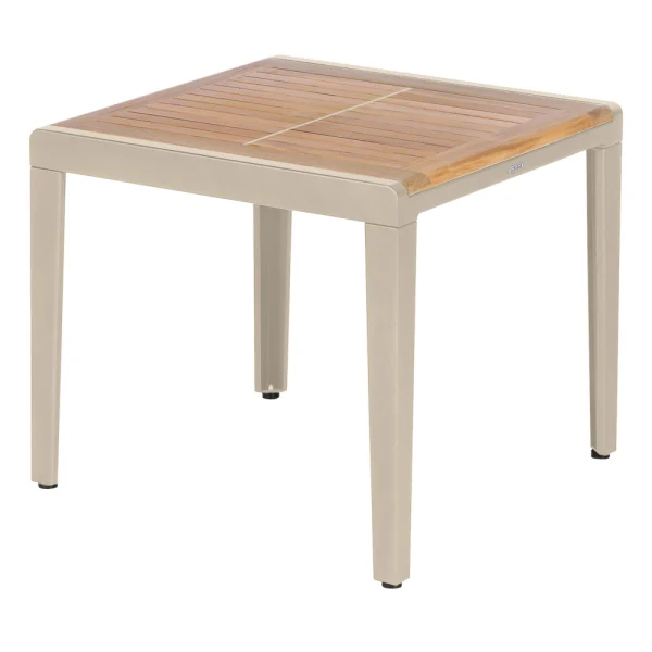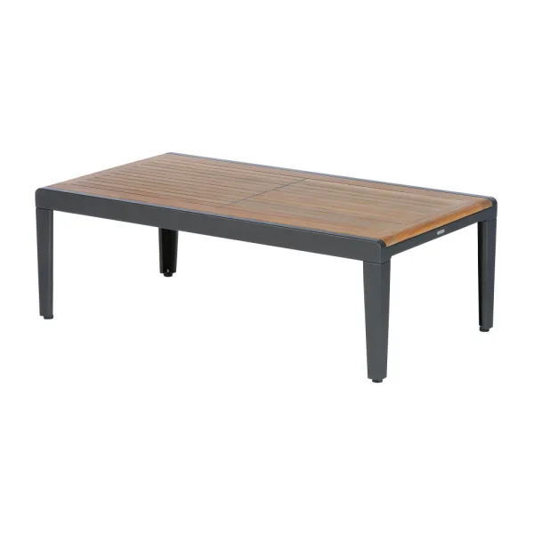 The 55" low table is adjustable in height from 20 to 26 inches—giving you lounging or dining flexibility—whatever is needed at the moment. Other table choices are three aluminum-framed occasional tables with an aesthetic teak tabletop that showcases a powder-coated center strip insert in matching color. The Aura Modular Deep Seating collection is ideal for outdoor entertaining or lounging poolside.