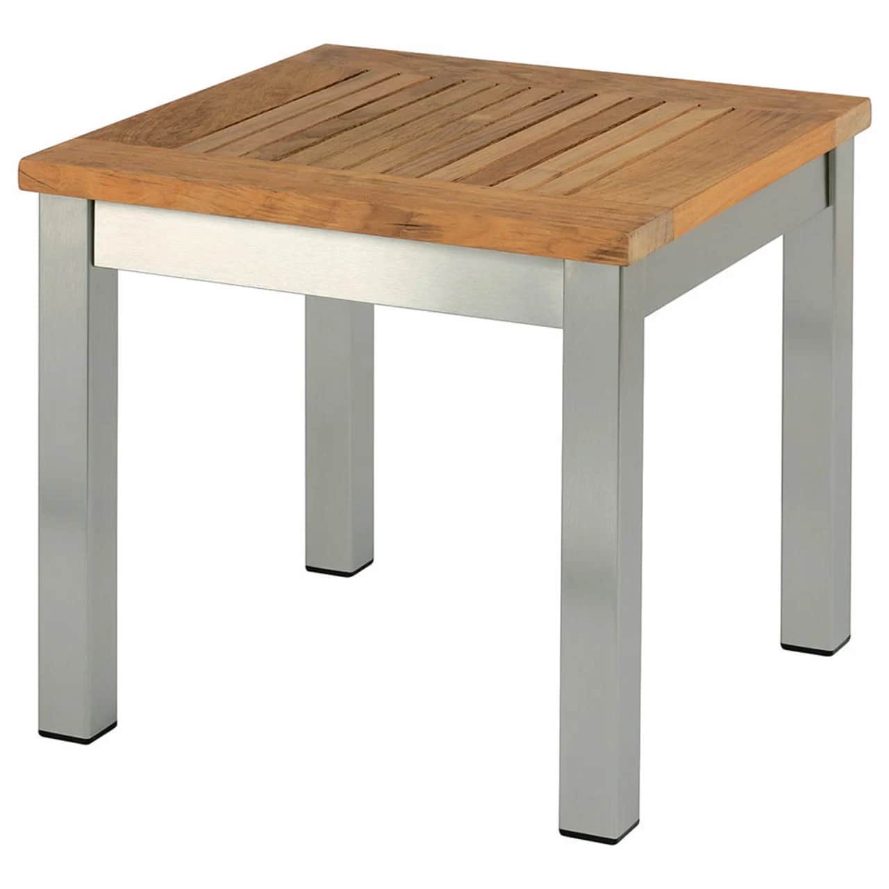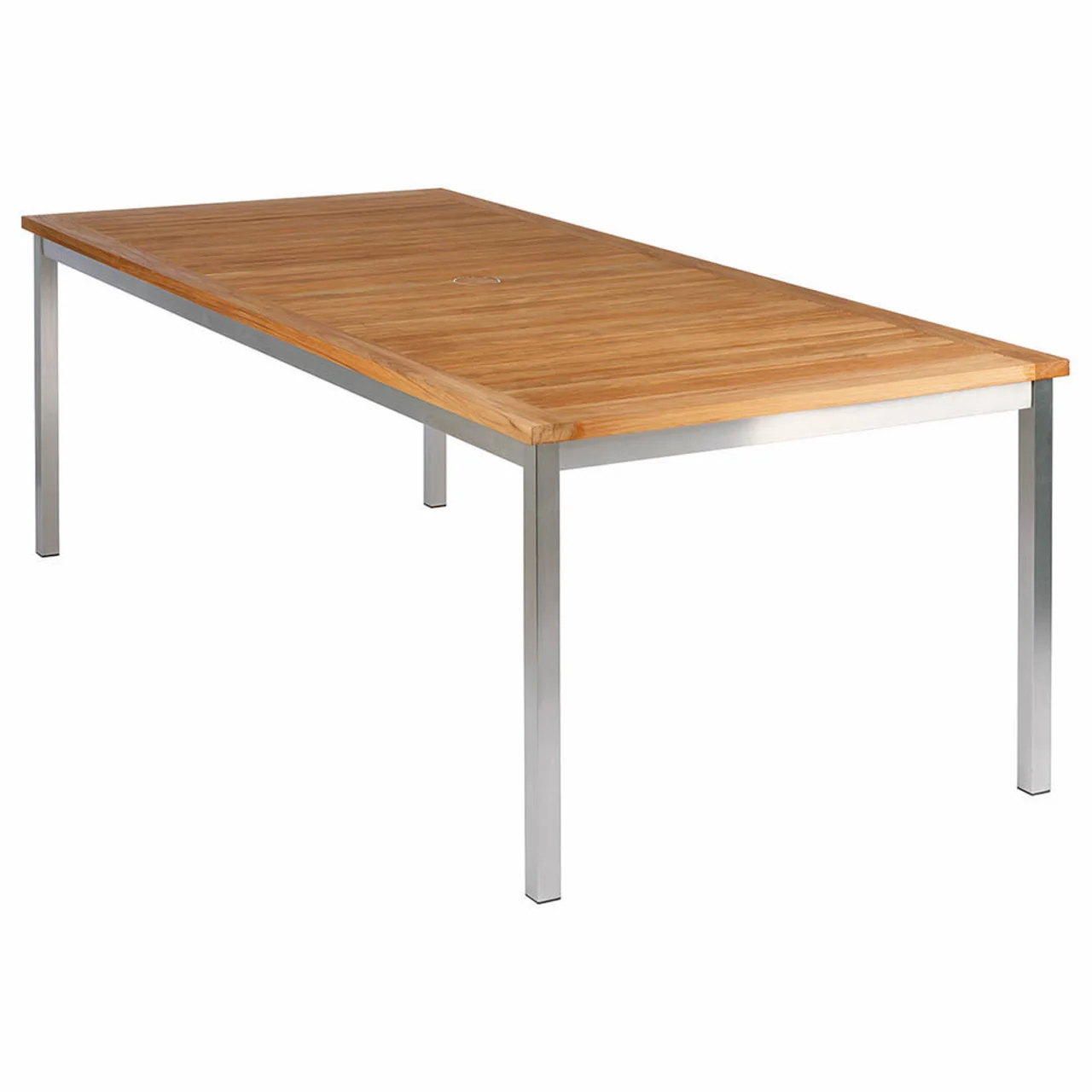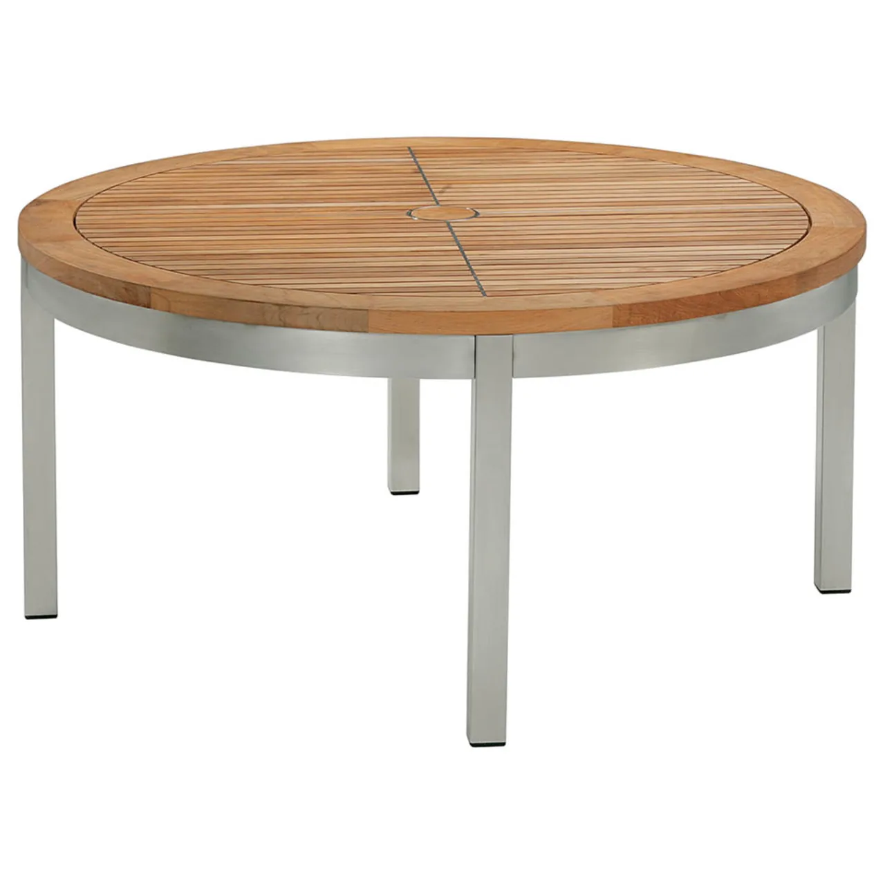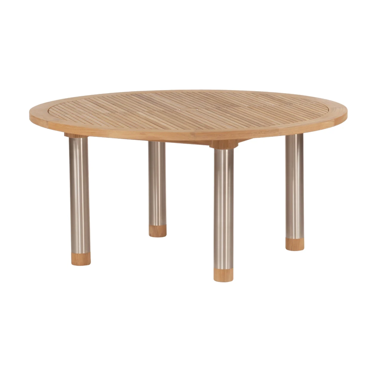 Frames are made from 316 marine-grade stainless steel, which is tough and exhibits increased corrosion resistance. The natural teak tabletops and accents add warmth and interest to the range.