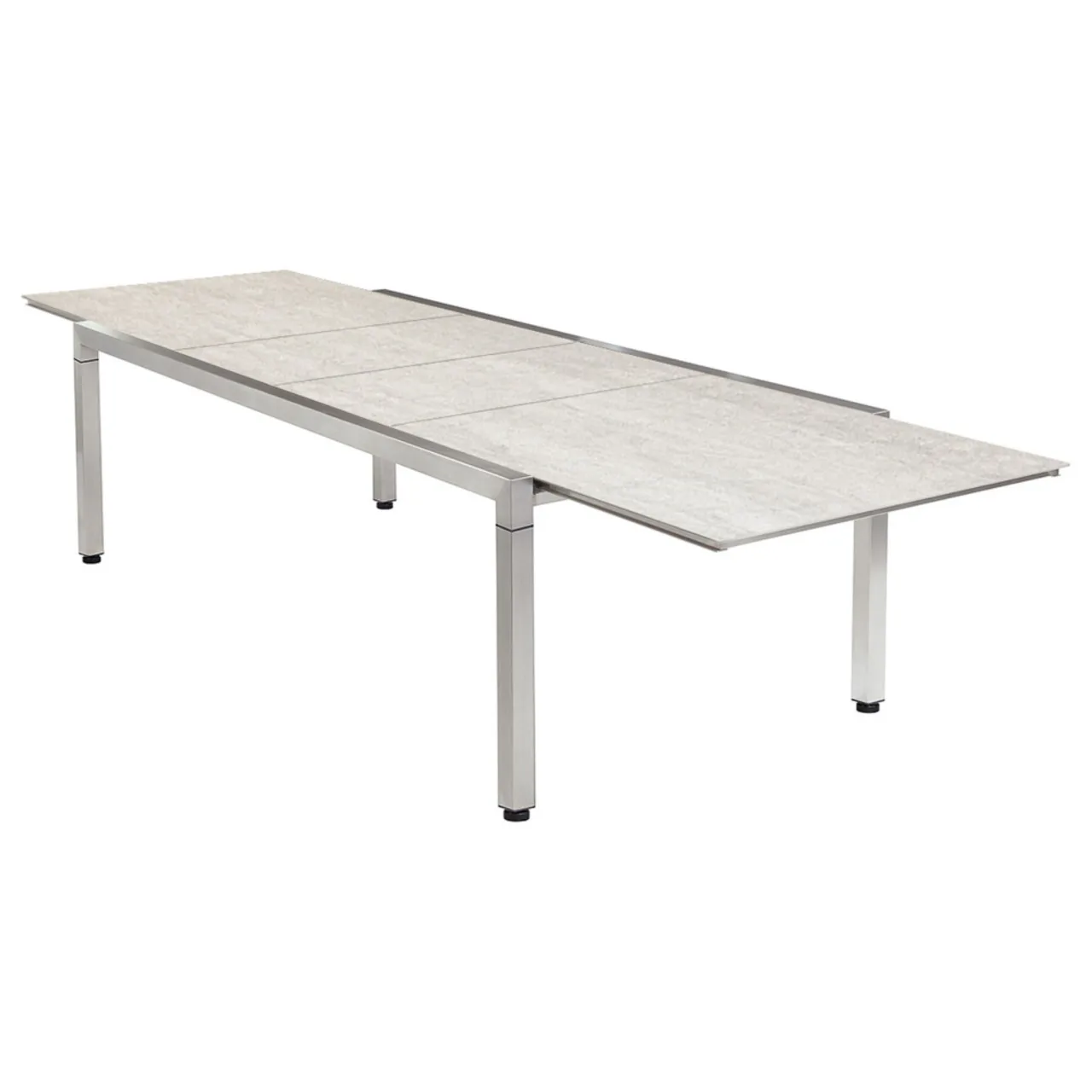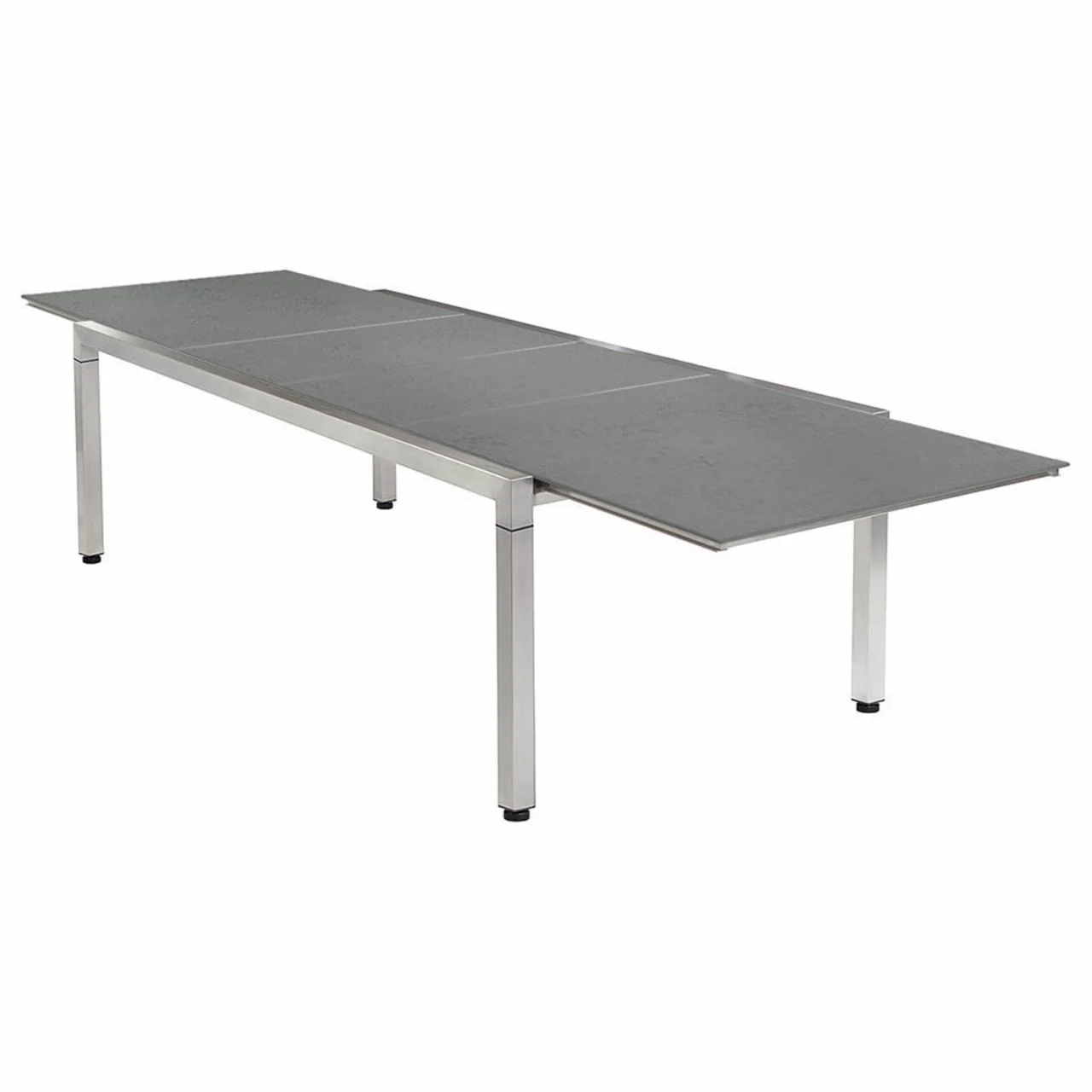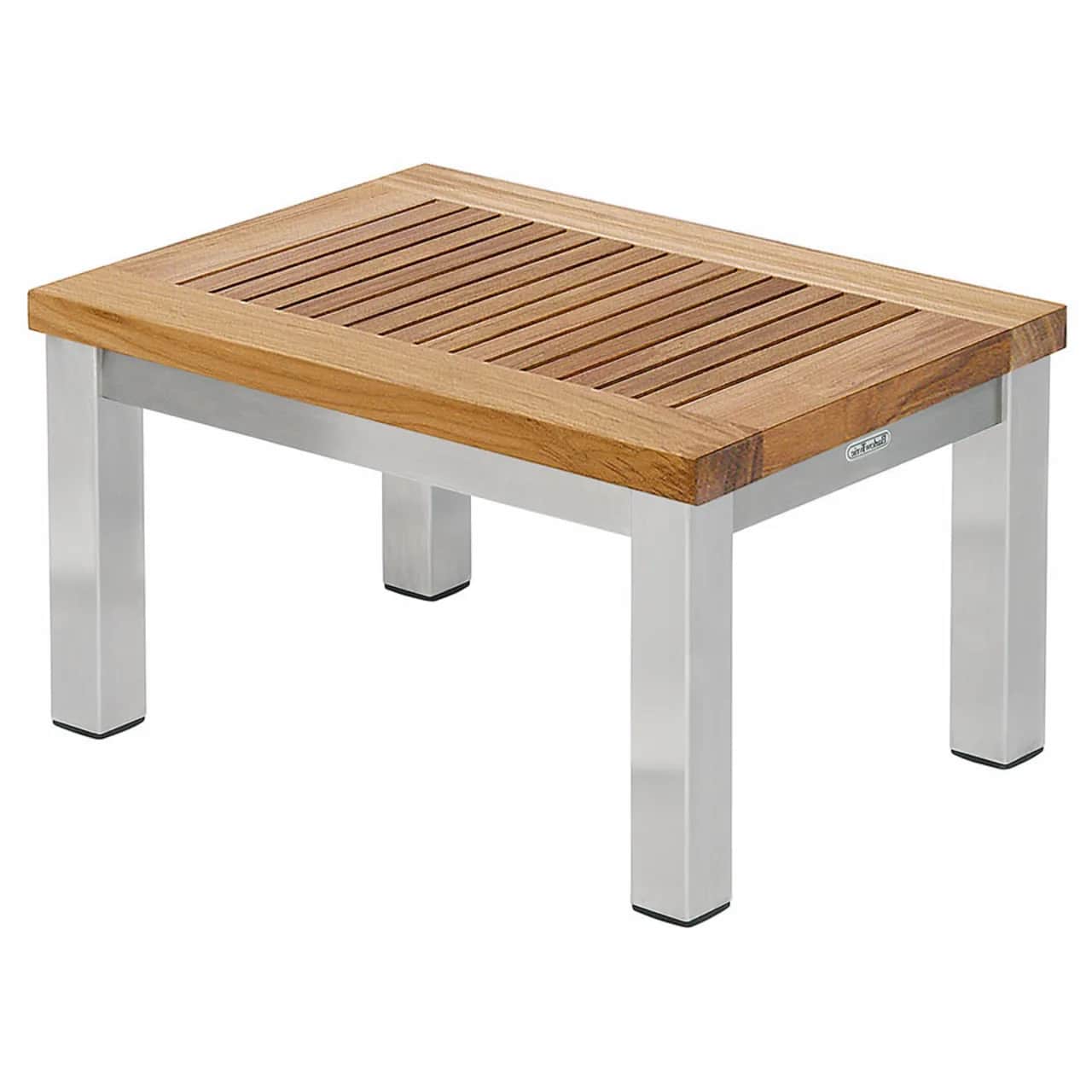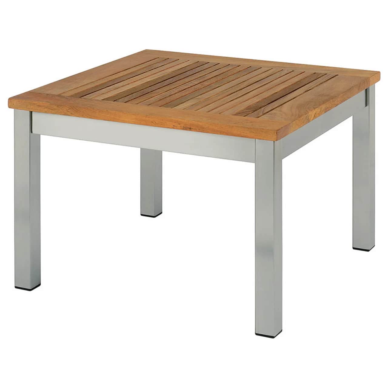 Frames are made from 316 marine-grade stainless steel, which is tough and exhibits increased corrosion resistance. The natural teak tabletops and accents add warmth and interest to the range.