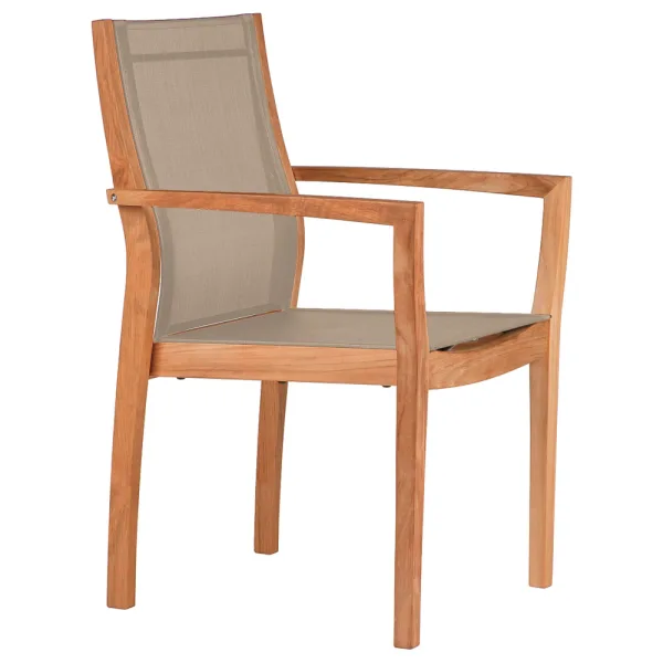 This beautiful collection by Barlow Tyrie features solid teak frames with your choice of teak seat and back, or Textilene sling in four different colors: charcoal, titanium, platinum, or pearl. All models are contoured for maximum comfort and style. The Horizon chairs look especially great with Barlow Tyrie's Apex Tables or Equinox Tables.