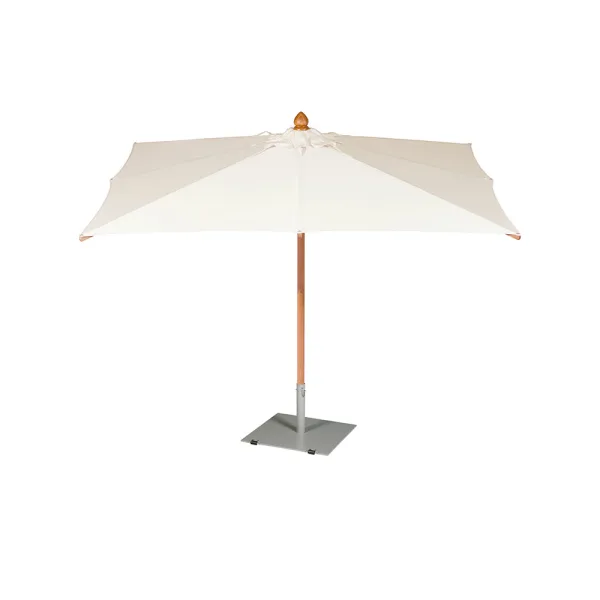 Napoli is a classic market umbrella with a FSC certified eucalyptus wood pole and struts and nickel-plated hardware. It is available as cantilever or center pole umbrella ranging from circular, rectangular to a square shape (2 & 2 1/2" poles) and a tilting version (1 1/2" pole) . Three of the designs come with a telescopic pole. All Napoli umbrellas will close over the dining table; thus, there is no need to move dishes and yourself out of the way before closing. Just contact us if you need detailed height measurements. Also, please take a look at the special Opening-and-Closing Sequence for Barlow Tyrie's telescopic poles.