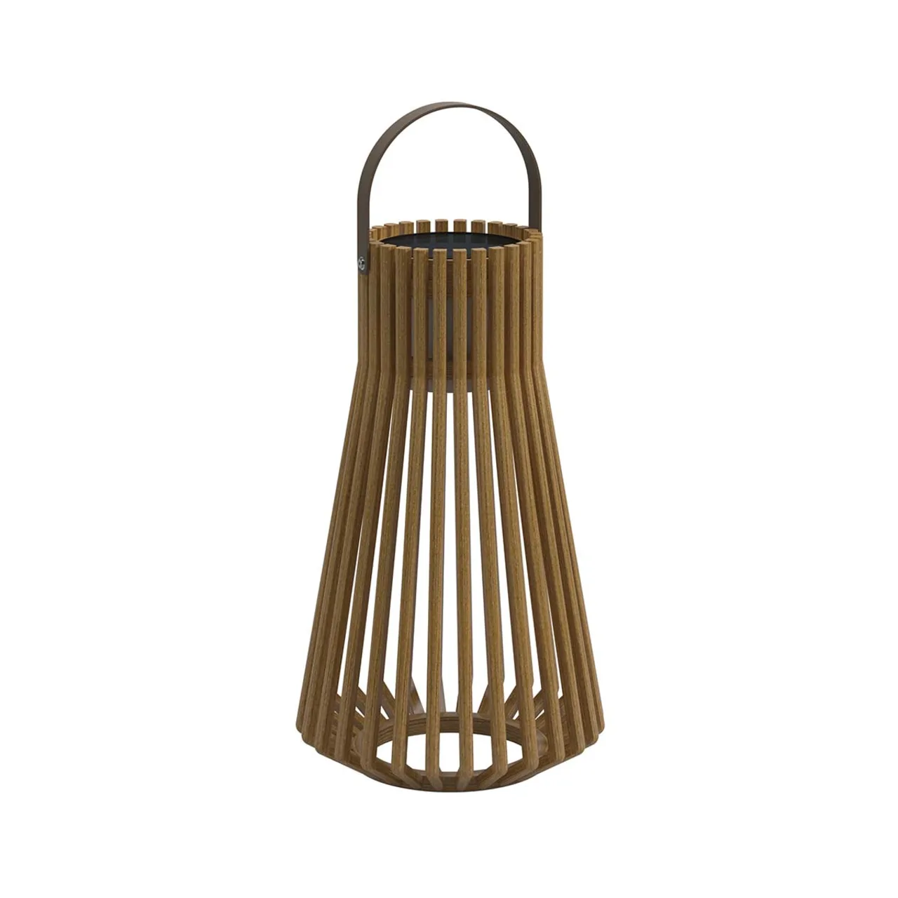 While practicality plays a big role in determining the source of light, your personal sense of style should influence the frame material. Ceramic outdoor lighting, like Gloster's sturdy Pebble Lanterns, incorporates an unusual but architecturally interesting design material into ambient lighting. Teak lanterns, like Royal Botania's Club Lounge, lend a vintage mid-century look that recreates the feeling of an interior environment outdoors. Aluminum lamps and lanterns are sleek and contemporary, whereas mesh and wicker evoke a summery, tropical feeling.