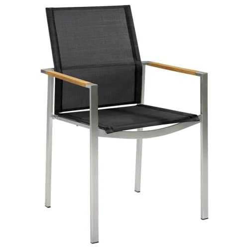 Windy areas call for more robust chairs that won't topple over with a strong gust of wind. Shop chairs made with heavy wood or solid steel and double-check the weight before you order. POINT's stainless-steel reinforced Summer dining chairs look lightweight but weigh a sturdy 24 lbs.