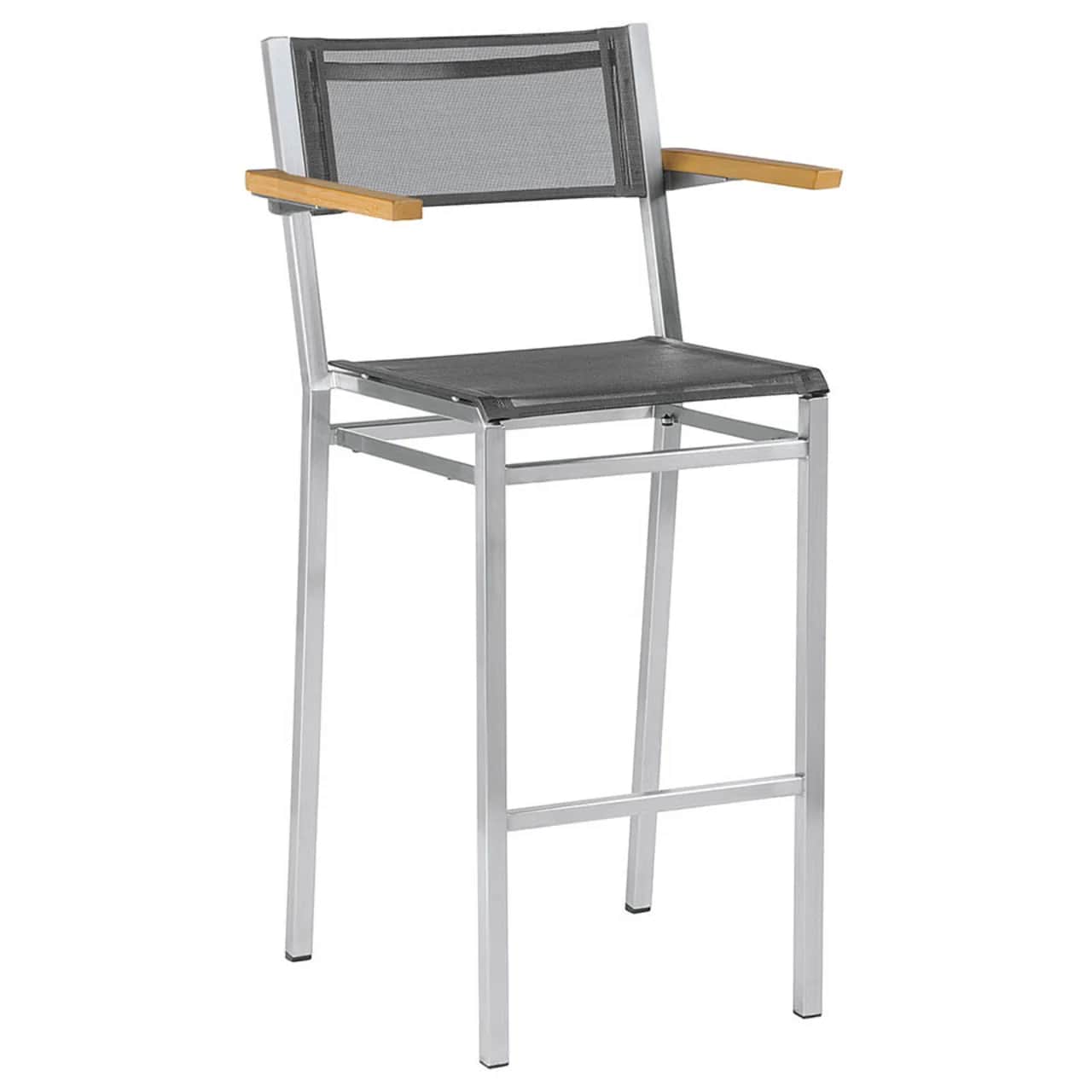 A tropical tiki bar would be complemented by the airy open weave of the DEDON SEASHELL bar stool. The sleek modern rooftop bar of a restored Art Deco hotel would be enhanced by the tapered stiletto-like feet of Gloster Archi, or the ornamental teak armrests and industrial-style polished steel of the Barlow Tyrie Equinox Carver Chair.