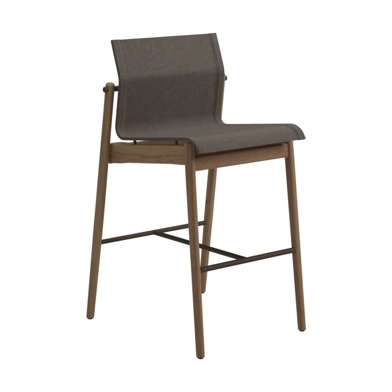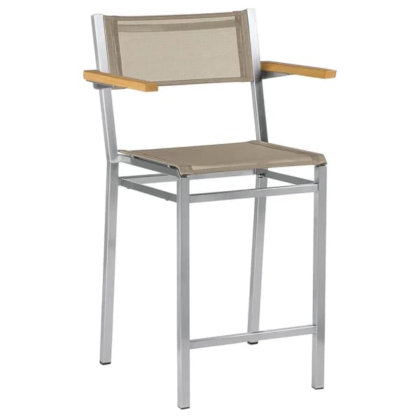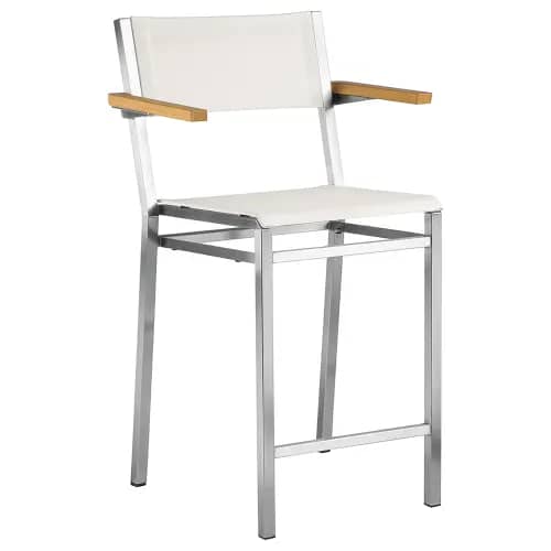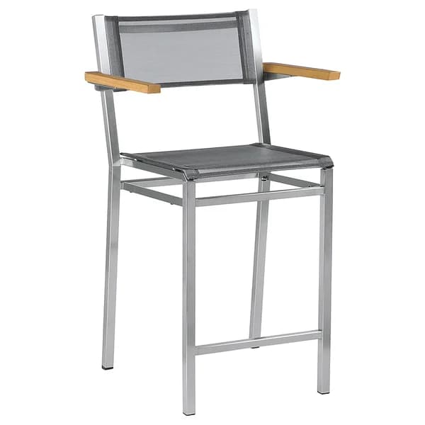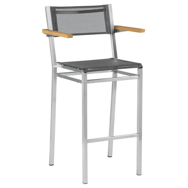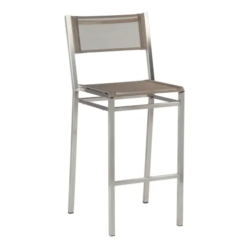 Curran offers a wide assortment of different design styles and material profiles for the various vibes of outdoor bars. A brewery or winery might have a patio or outdoor bar with a country rustic style. In that case a simple solid teak bar stool like Bermuda from Barlow Tyrie might be ideal.