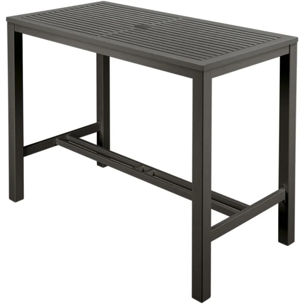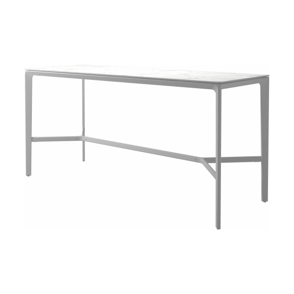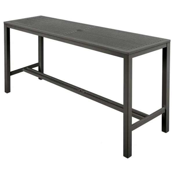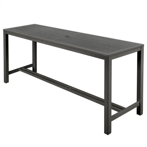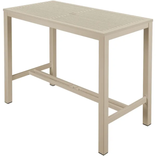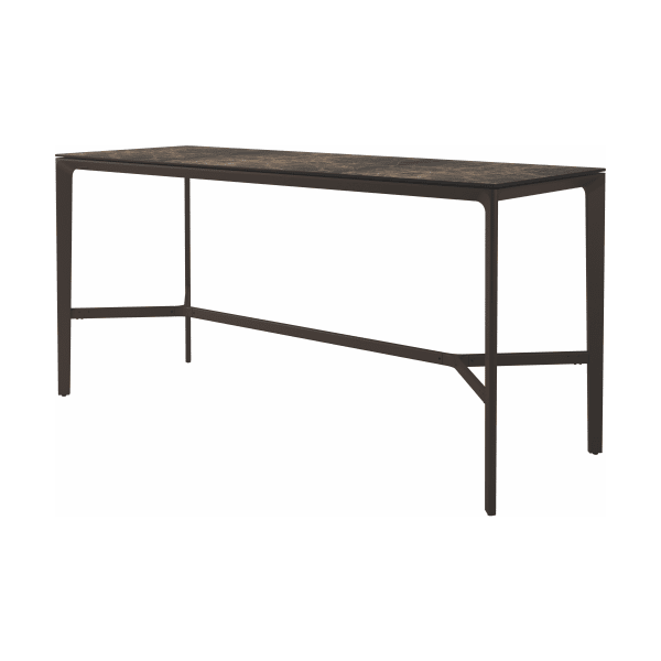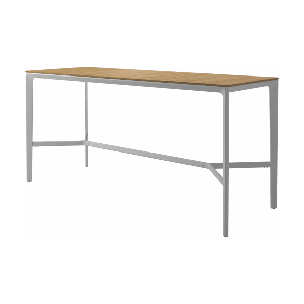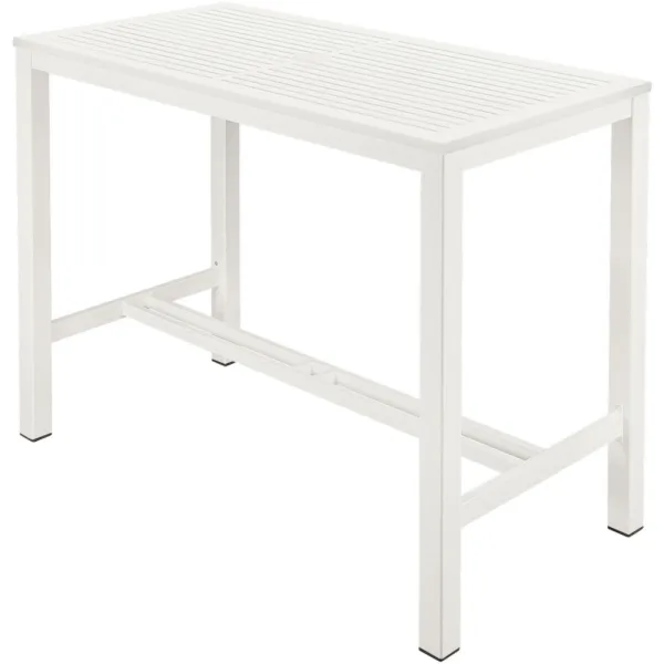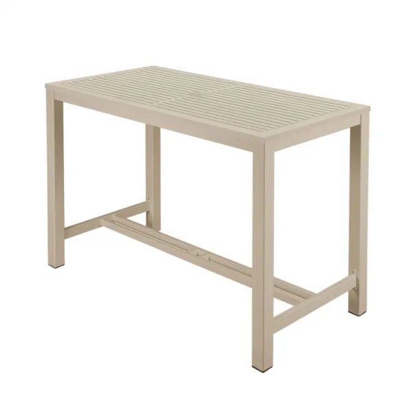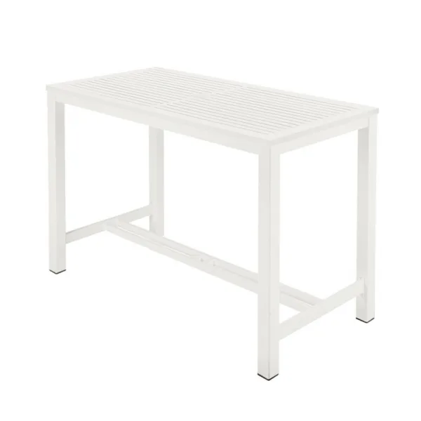 Bar-height patio tables are typically a few inches higher than counter-height tables and tend to have a smaller surface area, making them an excellent choice for intimate terraces or small spaces. Most of the outdoor bar tables we offer are between 40"- 45" tall. The Barlow Tyrie Aura Pub High Table is, for example, 41" tall while the Royal Botania XQI Bar Table stands a bit higher at 43." Â