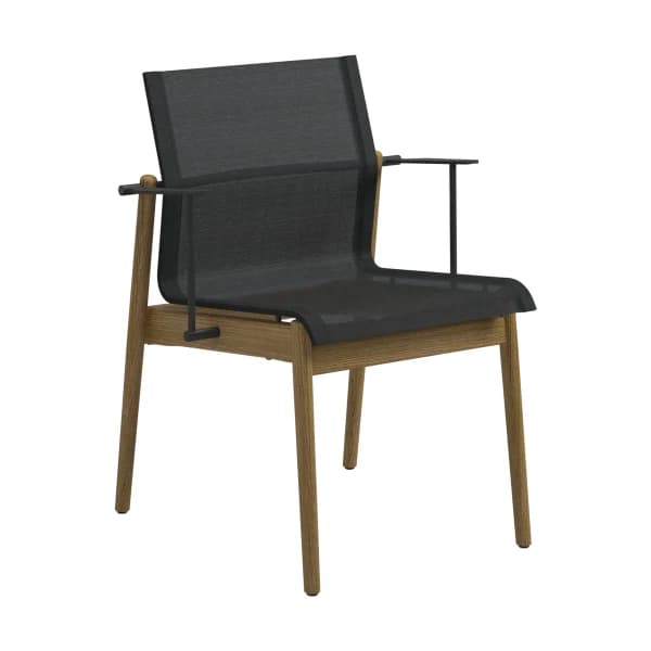 Your environment and stylistic preferences should inform your choice of material. Solid teak outdoor dining chairs possess a classic, natural beauty and offer excellent performance in any environment, developing a silver patina over time. For a more modern take on teak, consider chairs that layer modern materials on a teak frame.