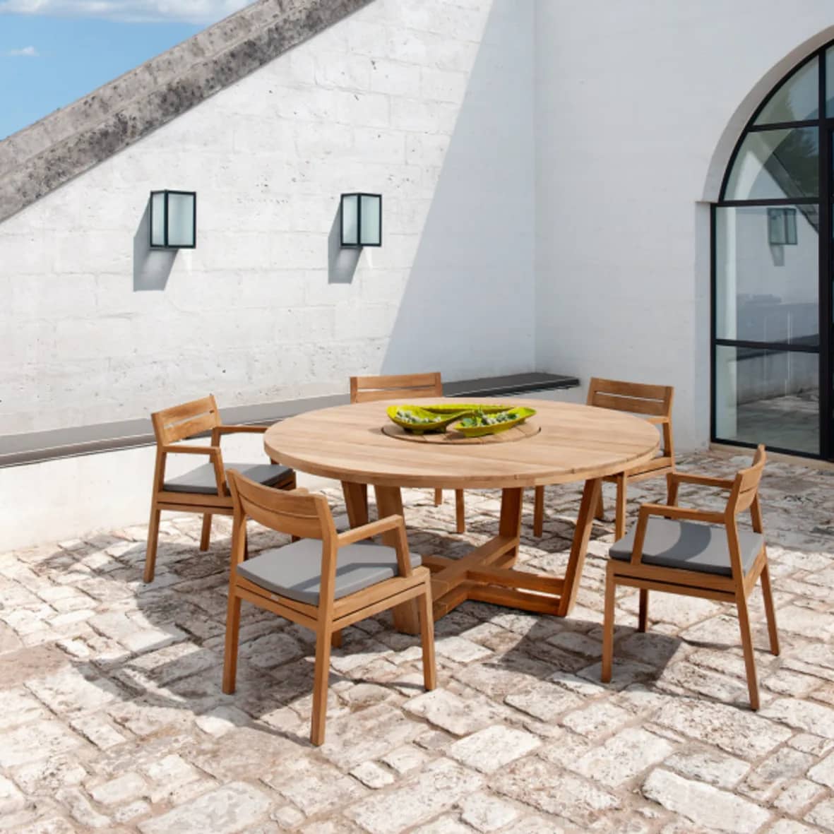 A celebration of teak, with natural or noble-grey pickled teak finished tables