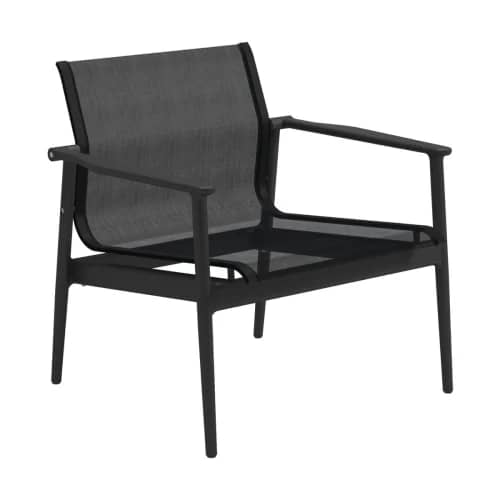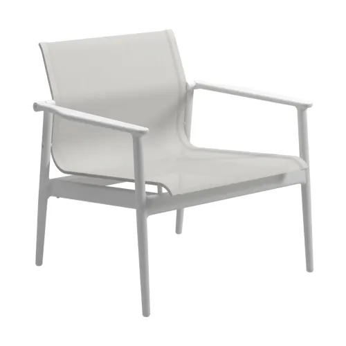 The 180 outdoor seating collection by Gloster is practical in design with a modern twist in style and comfort. The frame of the chairs is handcrafted with premium aluminum and finished with a powder coating that is extremely resistant to the harshest weather conditions. The sling seat and back are made from a soft luxurious fabric to give you structured comfort. Both materials are easy to clean and will last through the years.