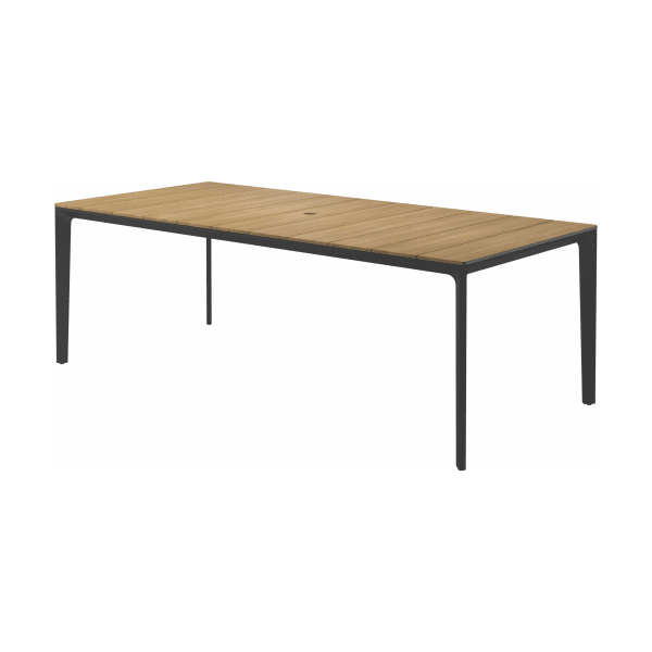 Note:Â only tables with a teak top have a parasol hole.