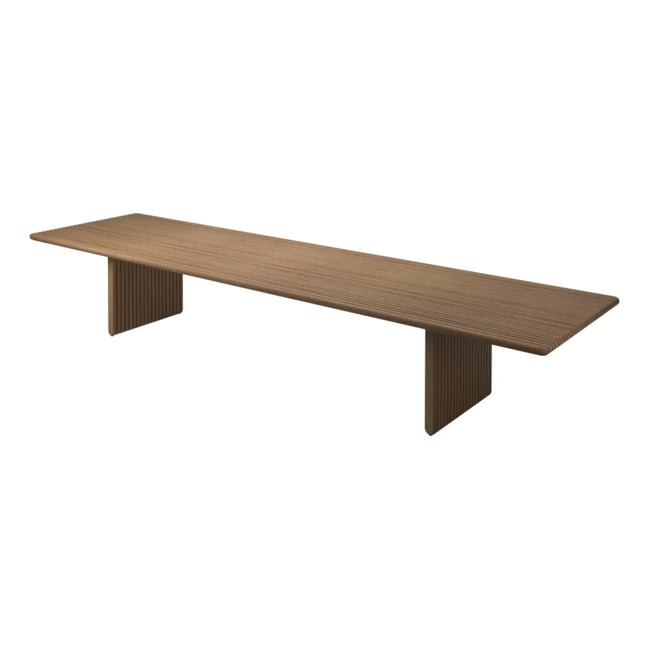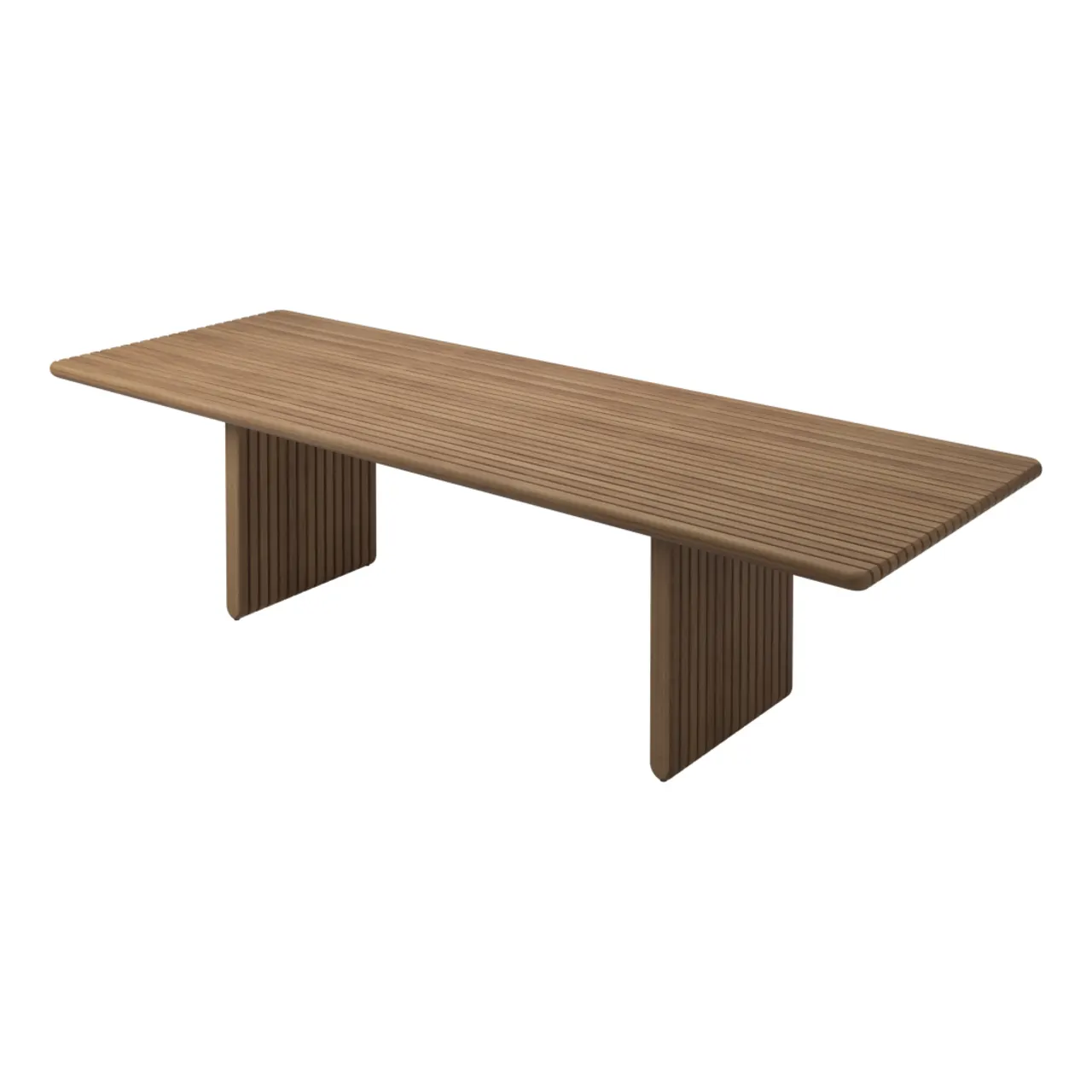 Inspired by the regular slatting of teak decking on sailing vessels, Gloster Deck replaces caulked seams with empty space, allowing air and light to move through the tables and seating design and lending the impression of transparency.
