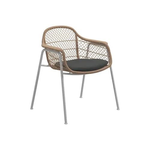 The lounge chair has a wider carriage for relaxed informal dining and enjoying company on the balcony. The narrower dining chairs have a more upright posture and can be paired with the cozy dining table for an intimate and elevated dining experience.