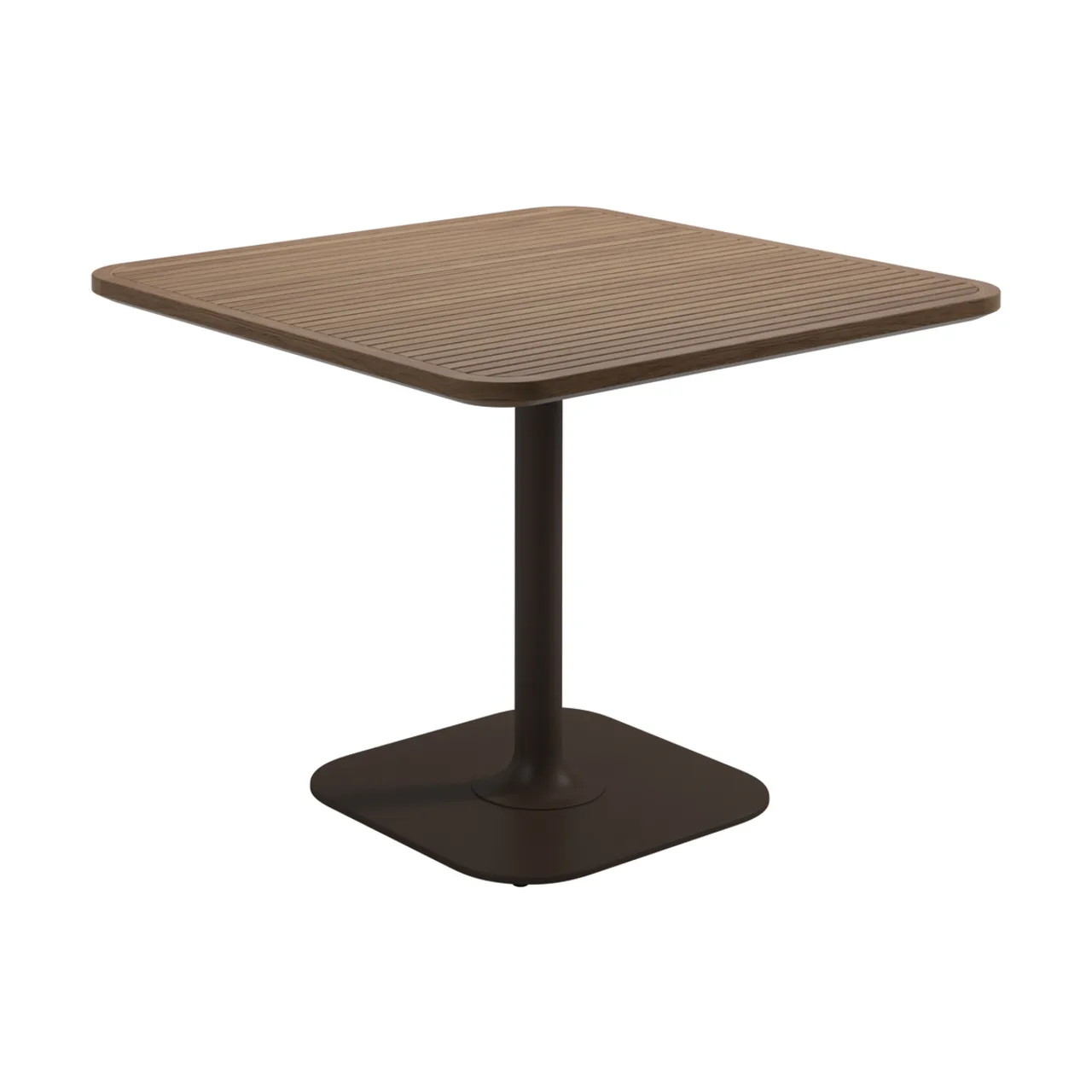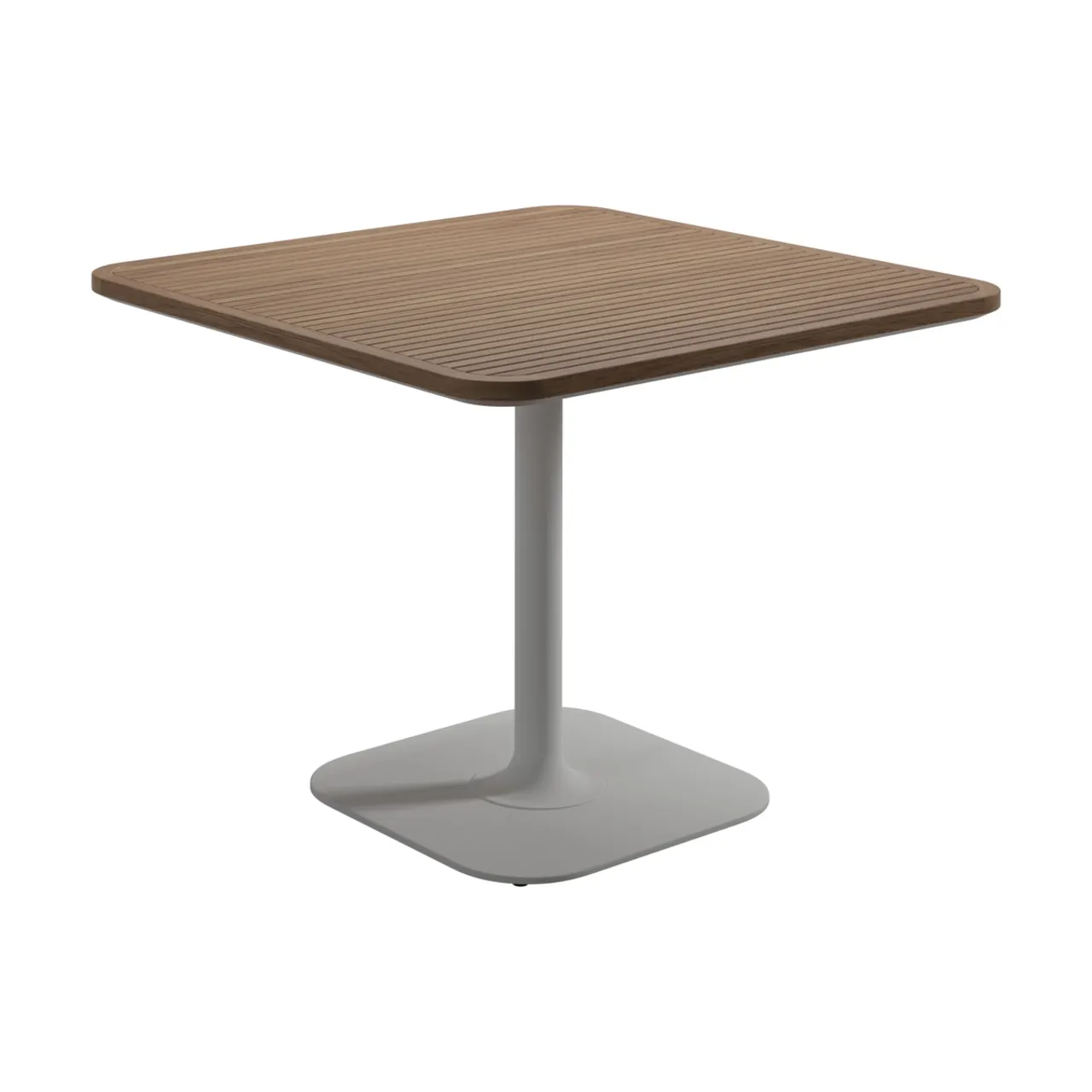 Gloster Grid Dining is similar to the lounge collection in terms of finishes and modularity, but it sits a little higher to work for relaxed dining.