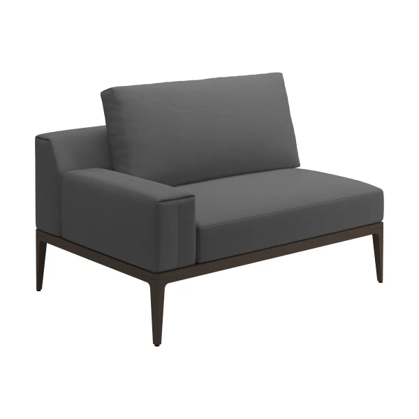 Grid, one of Gloster's modular collections, lives up to its name. It features a grid of completely flexible, contemporary units that may be put together in various ways to create the composition that meets your custom needs. With its light, corrosion-resistant powder-coated aluminum frames and super quick-dry outdoor cushions, Grid is made for the outdoors and will shine in residential as well as commercial settings. The frames are available in three colors: white, meteor, or java, all with a textured surface. This celebrated collection is one of the most popular deep seating choices on the luxury market.