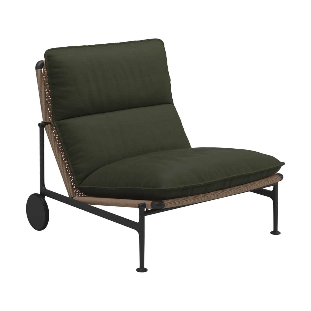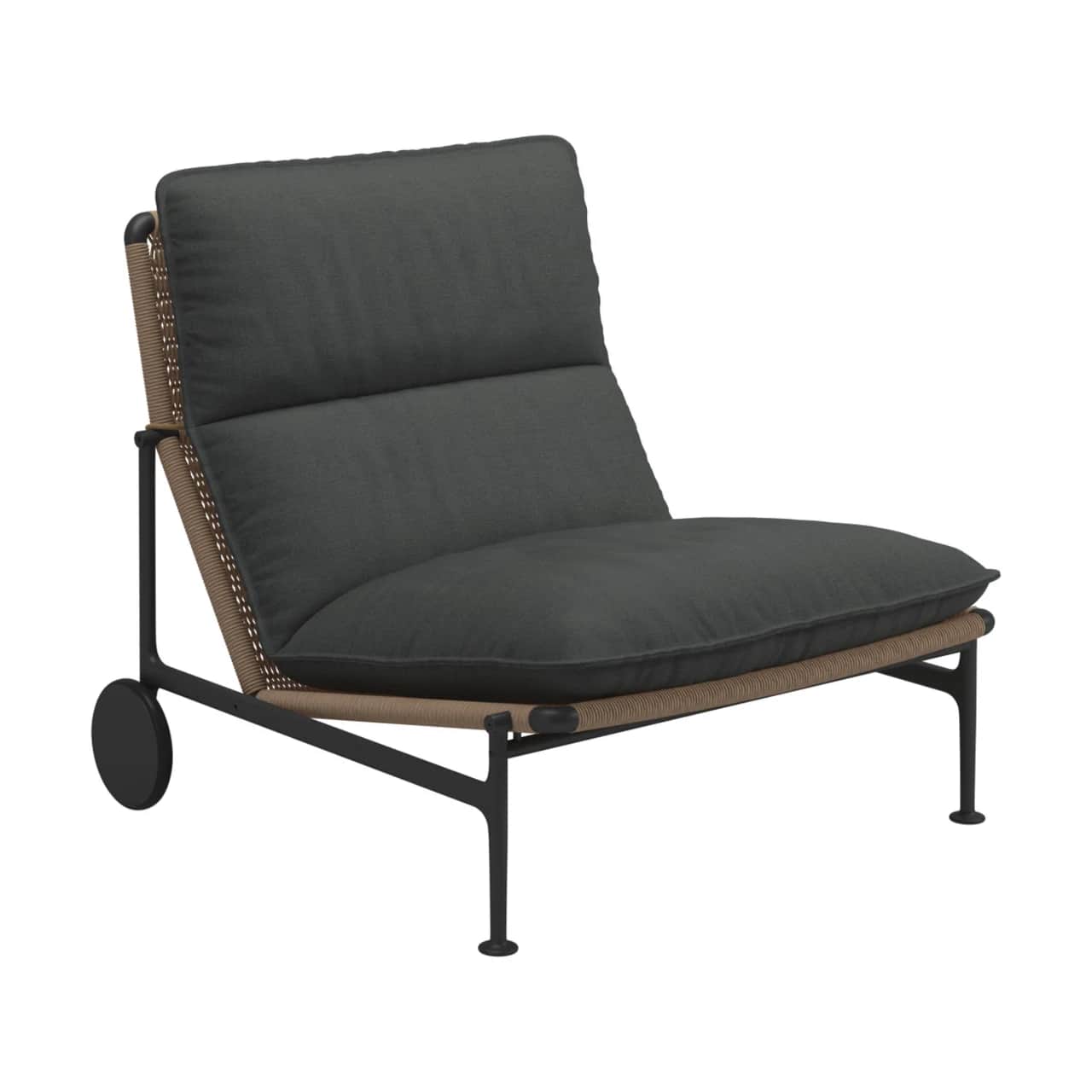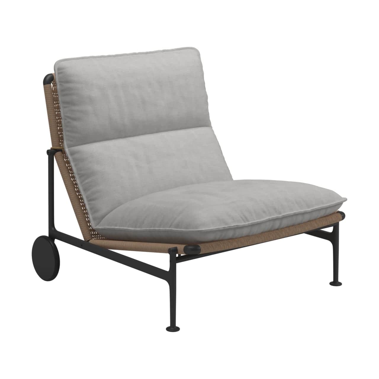 The lightweight aluminum frame has oversized disc wheels to make this collection daringly mobile as you track the sun overhead, whether you are chasing its warm golden rays or looking for calm and soothing shade on a hot day. These wheels match the lounger frame and are outfitted with slim, non-marking rims suitable for all surface types.