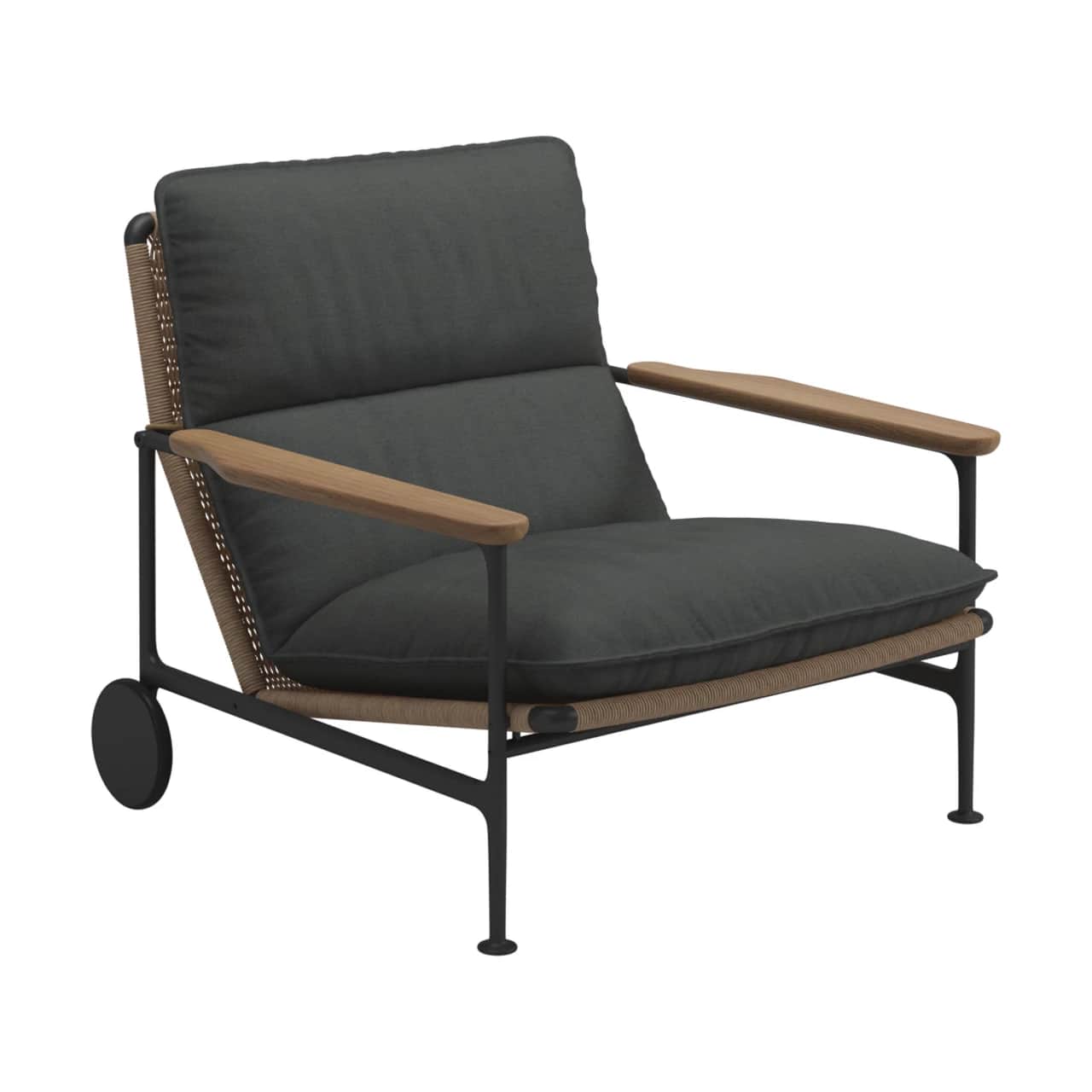 The points and angles of Zenith's design flow resemble a star chart, mapping out a very spare yet invitingly comfortable lounging experience. Basket-weave style wicker panels dip below the horizon of the seat to cradle the seat's occupant. This diverse array of materials coalesces into something, modern, luxurious, and practical, trademarks of Gloster's signature design aesthetic.