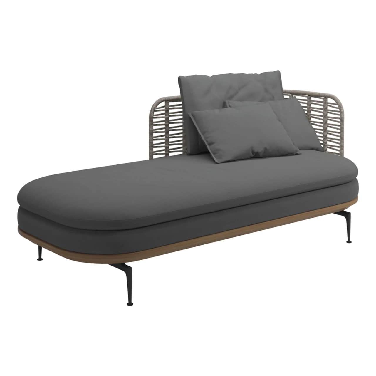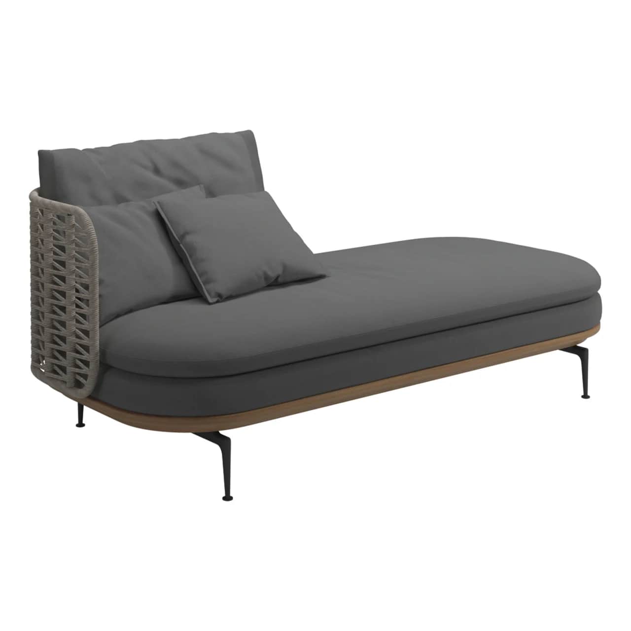 Those in search of a more modern outdoor chaise should consider contemporary weather-resistant materials like sling and aluminum. Sling chaise lounges, like Barlow Tyrie's Equinox line, often feature clean lines and require little maintenance, which is always a plus. While sling loungers are comfortable enough that they do not require a cushion, upholstered loungers provide extra padding and warmth, extending their usefulness in places with a short summer.