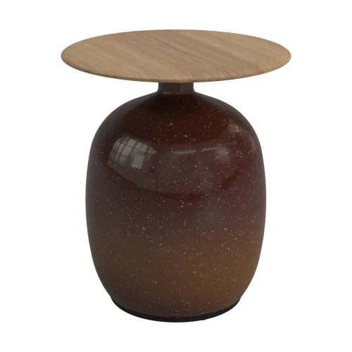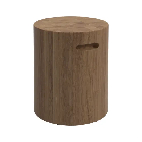 If the table will probably stay in one place for most of the year, solid teak side tables are an excellent option because they showcase the natural properties of the teak wood and can even double as a stool for additional seating. Gloster's Raw Log Side Table is an exemplary example of this naturalistic approach, maintaining the purity of the Grade-A teak tree from which each unique table originates. Gloster's Block Square Side Table also captures the natural properties of teak in its beautiful end-grain surface.Â