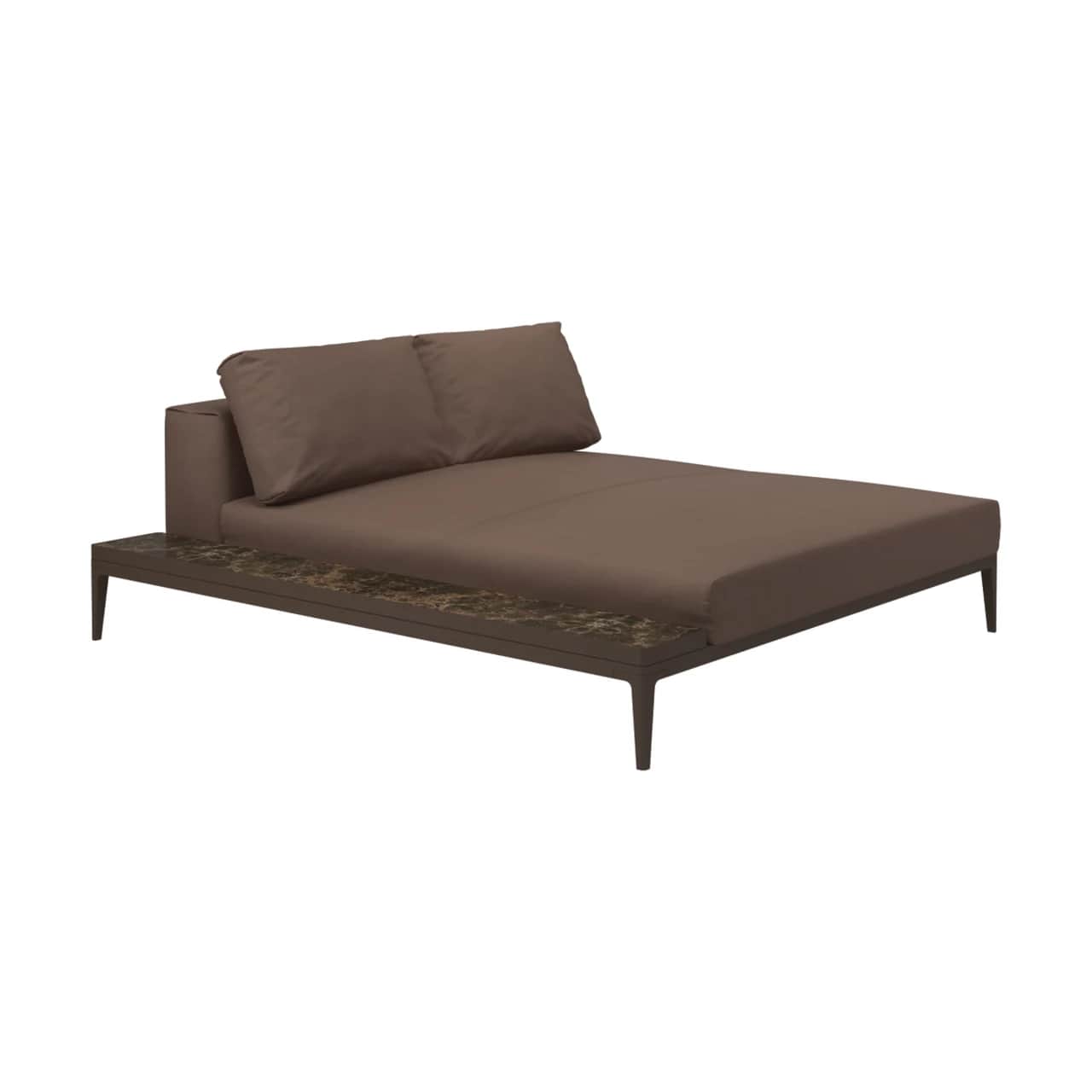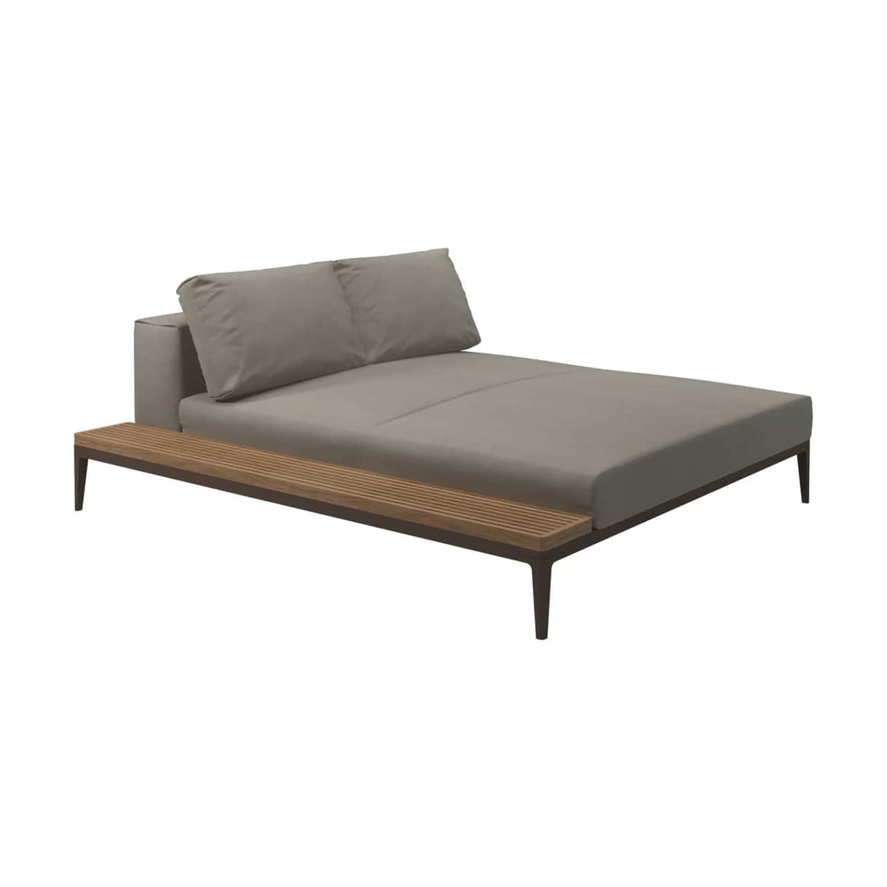 One final important consideration for your deep seating furniture layout is cushion placement. Some collections offer low seating with the cushions placed on a teak platform just inches above the ground. While this is a luxurious experience that you can literally sink into, it is worth considering if some guests might have difficulty getting in and out. Two more dimensions to consider are the width and depth of the cushions. The aforementioned Aiko collection from Mamagreen offers your choice of comfort or deep modules. Comfort modules are shallower and wider to invite company to sit and chat side by side, while deep modules invite your guests to escape into a quieter, more solitary space.