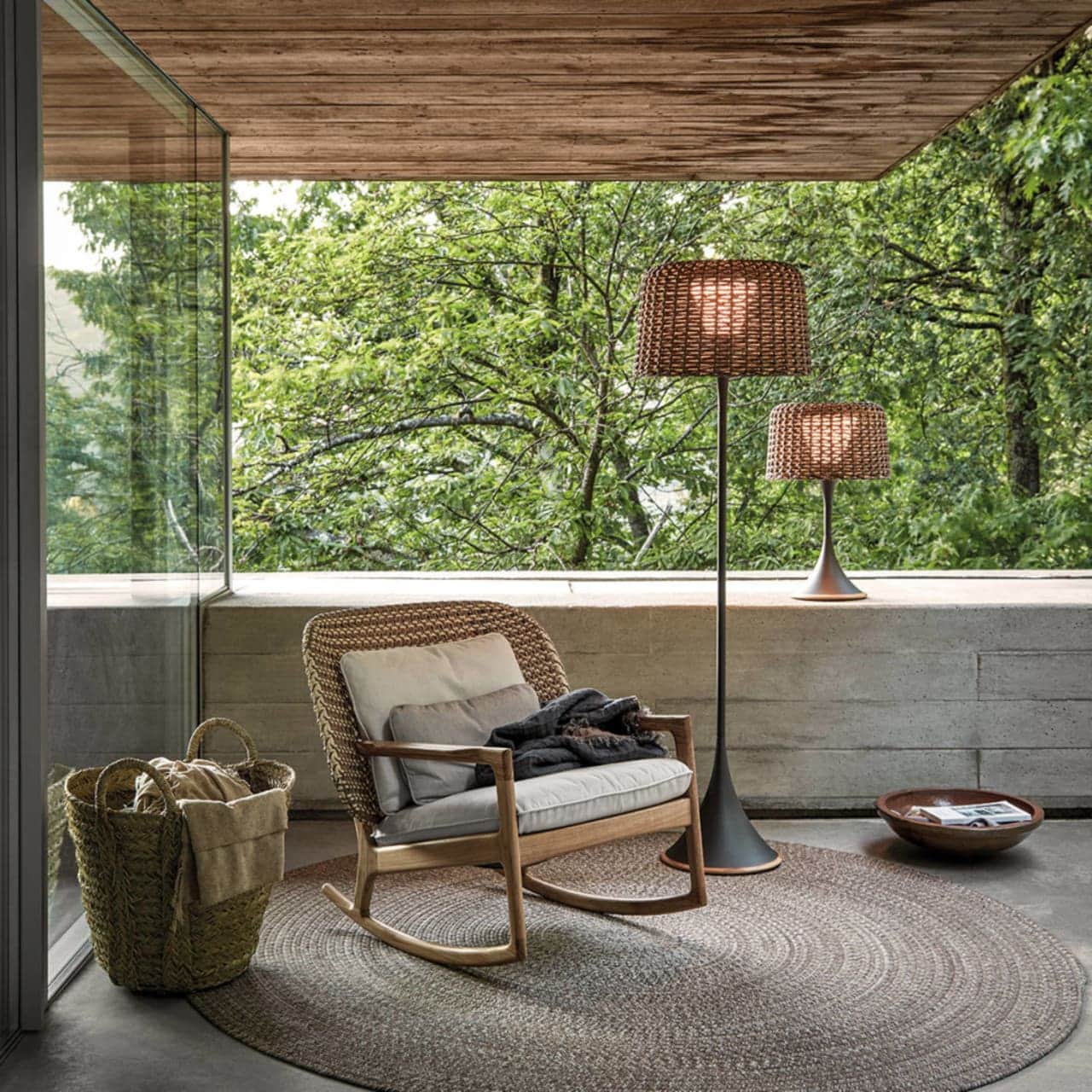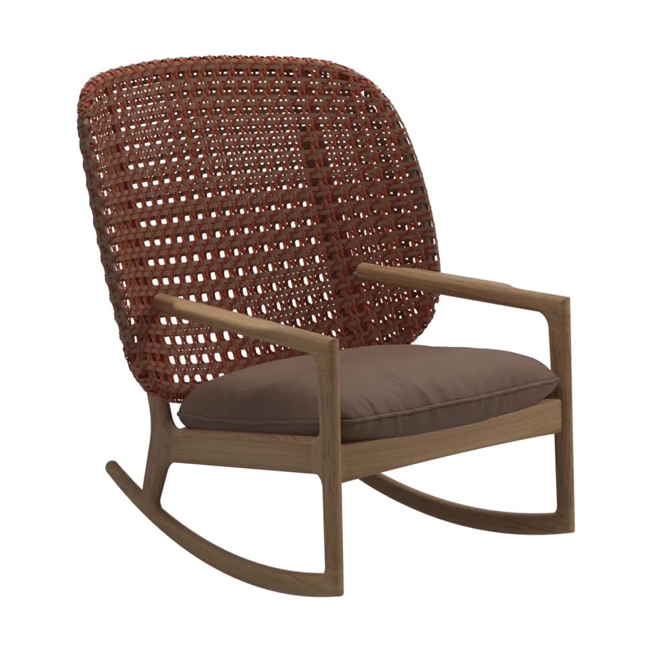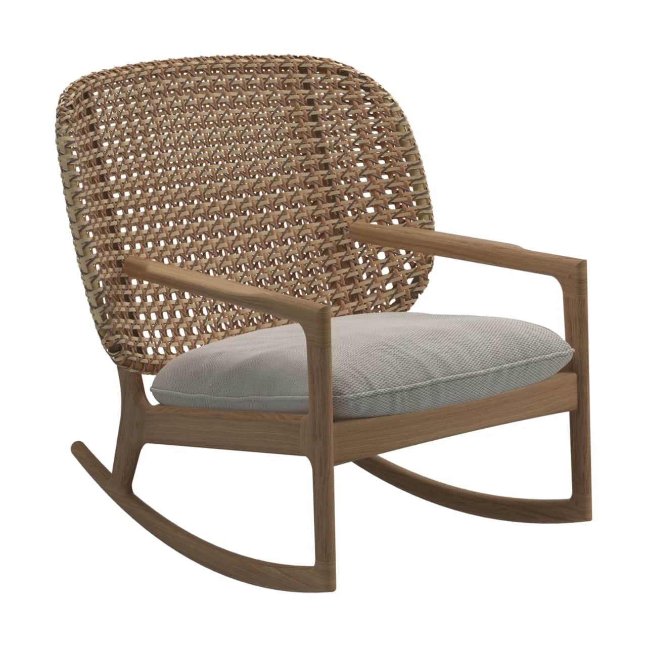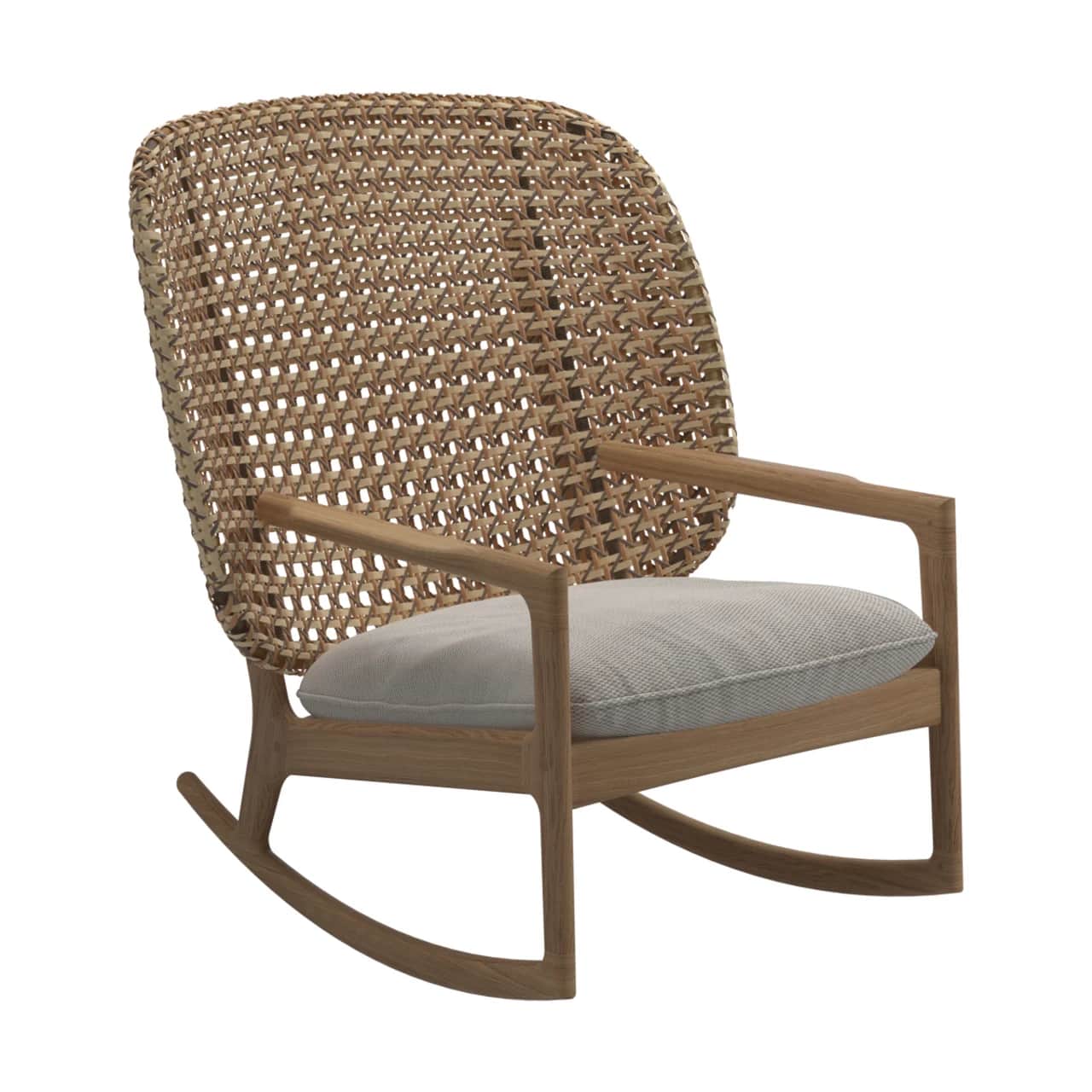 Nothing beats a classic teak rocker on the back porch for a quiet rest while waiting for the fireflies to come out. The Gloster Kay High Back Rocking Chair has a high open-woven wicker back to comfortably seat taller individuals as well as a sturdy teak undercarriage.