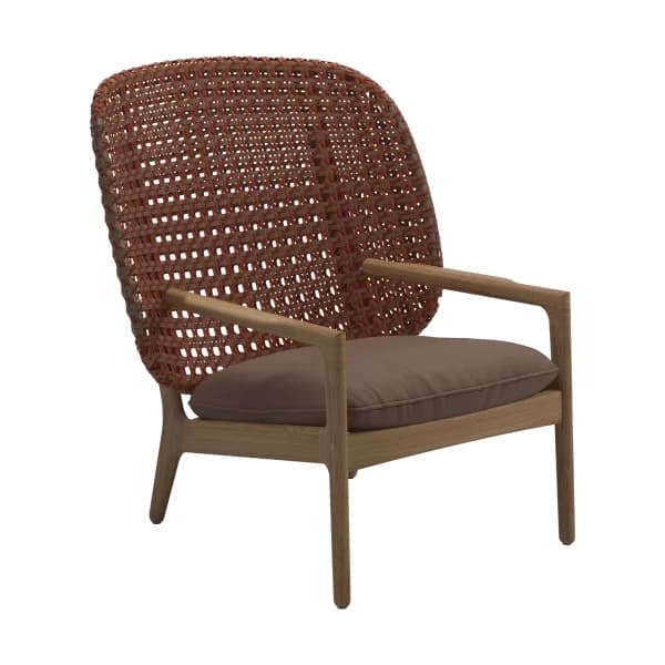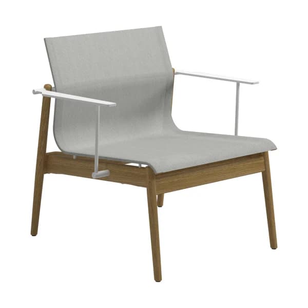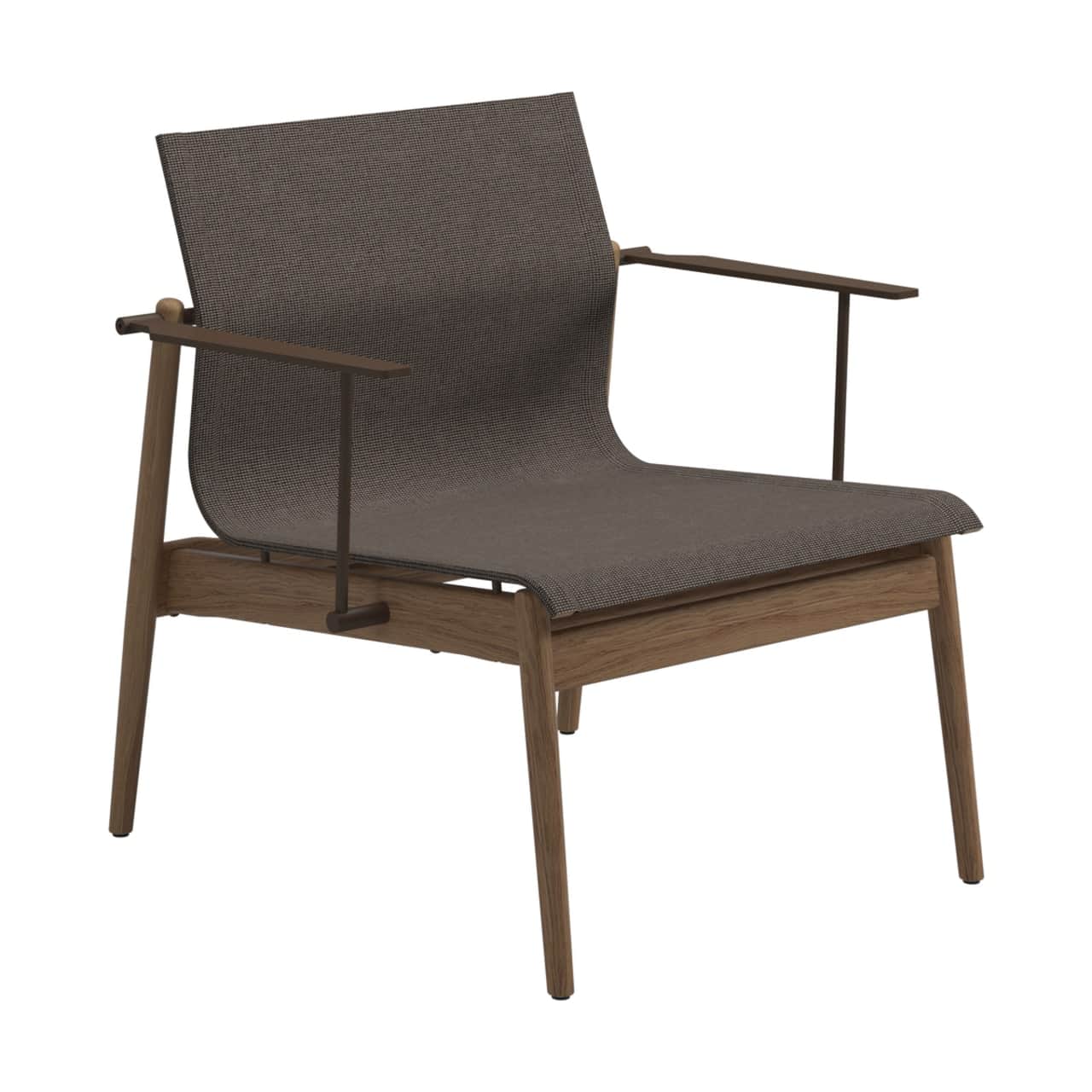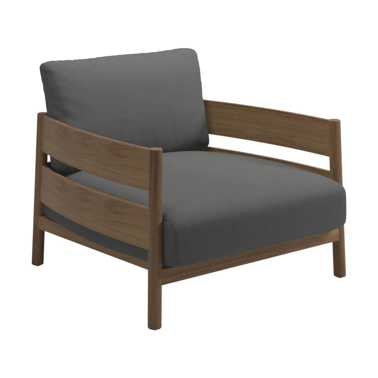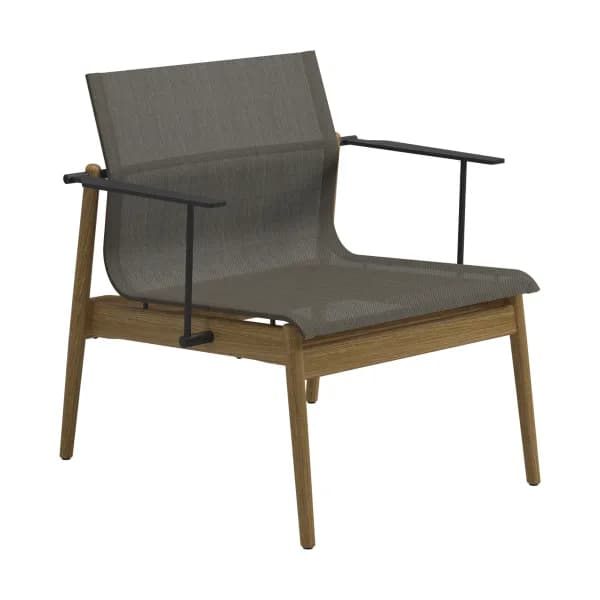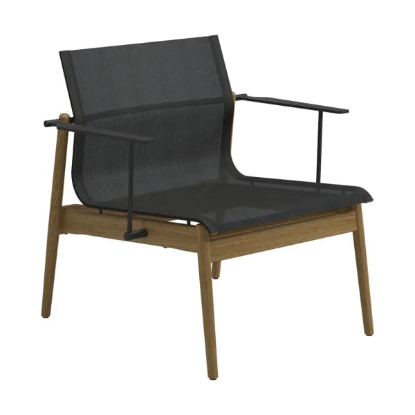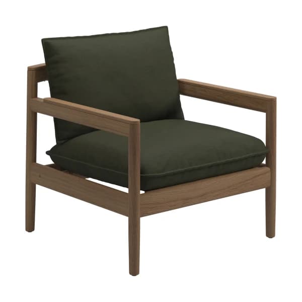 Perhaps the most classic expression of teak lounge chairs is the solid-teak framed rustic style. A mainstay of UK-based Barlow Tyrie is their Rothesay Estate Armchair, an almost throne-like imposing teak armchair that would look right at home in a country garden. The teak Adirondack chair is an updated ergonomic take on the Mid-Atlantic classic.