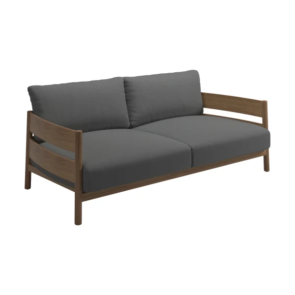 Teak outdoor sofas are a rustic option for ski lodges, as well as high-desert escapes where the warmth of teak is complemented by the soft ruddy colors of sun and earth. The popular DEDON TIBBO collection features turned teak armrests, feet and frame elements, giving the outdoor sofa a sculptural refined indoor look.