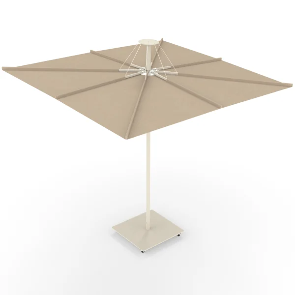 An elegant update of the classic market umbrella, Infina UX opens via a rope concealed within the pole. Available in a neutral soothing color combo.