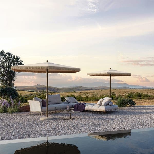 Understated simplicity, contemporary elegance, and exceptional performance define Umbrosa, a Belgian manufacturer of state-of-the-art umbrellas and parasols. The small organization redefines the form and function of center-pole and cantilever umbrellas by using the highest quality materials to realize the vision of acclaimed international designers.Â