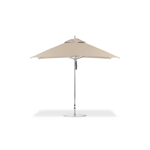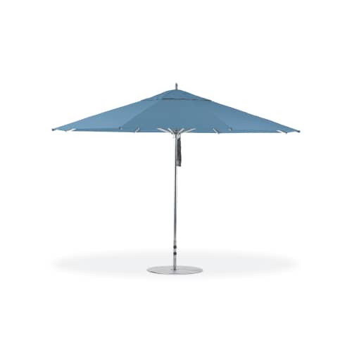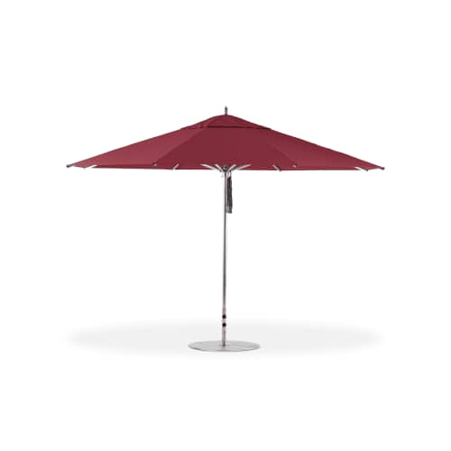 Greenwich is a stately classically-designed market umbrella engineered to retain its clean polished appearance in high-use environments such as resorts and restaurants. Its all-weather aluminum construction provides lasting durability, protection against the elements, and the strength to retain its shape year after year.