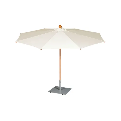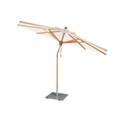 Napoli is a classic market umbrella with a FSC certified eucalyptus wood pole and struts and nickel-plated hardware. It is available as cantilever or center pole umbrella ranging from circular, rectangular to a square shape (2 & 2 1/2" poles) and a tilting version (1 1/2" pole) . Three of the designs come with a telescopic pole. All Napoli umbrellas will close over the dining table; thus, there is no need to move dishes and yourself out of the way before closing. Just contact us if you need detailed height measurements. Also, please take a look at the special Opening-and-Closing Sequence for Barlow Tyrie's telescopic poles.